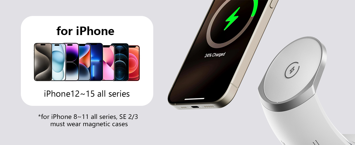 外贸专供小月亮磁吸三合一无线充电器小夜灯15W无线充灯唤醒灯