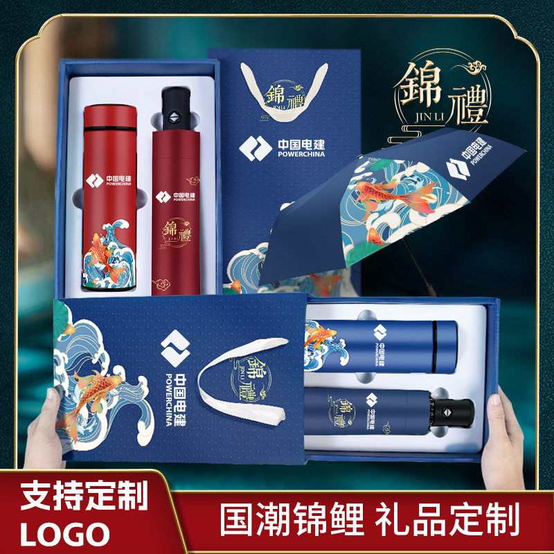 国潮企业年会伴手礼定制LOGO雨伞保温杯公司开业活动商务礼品套装
