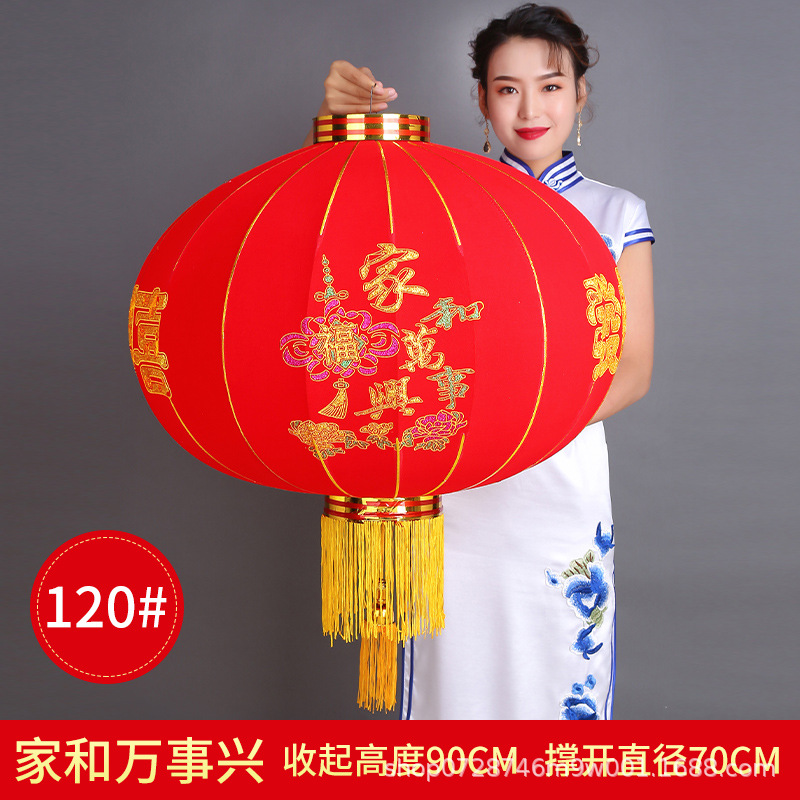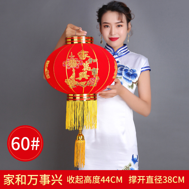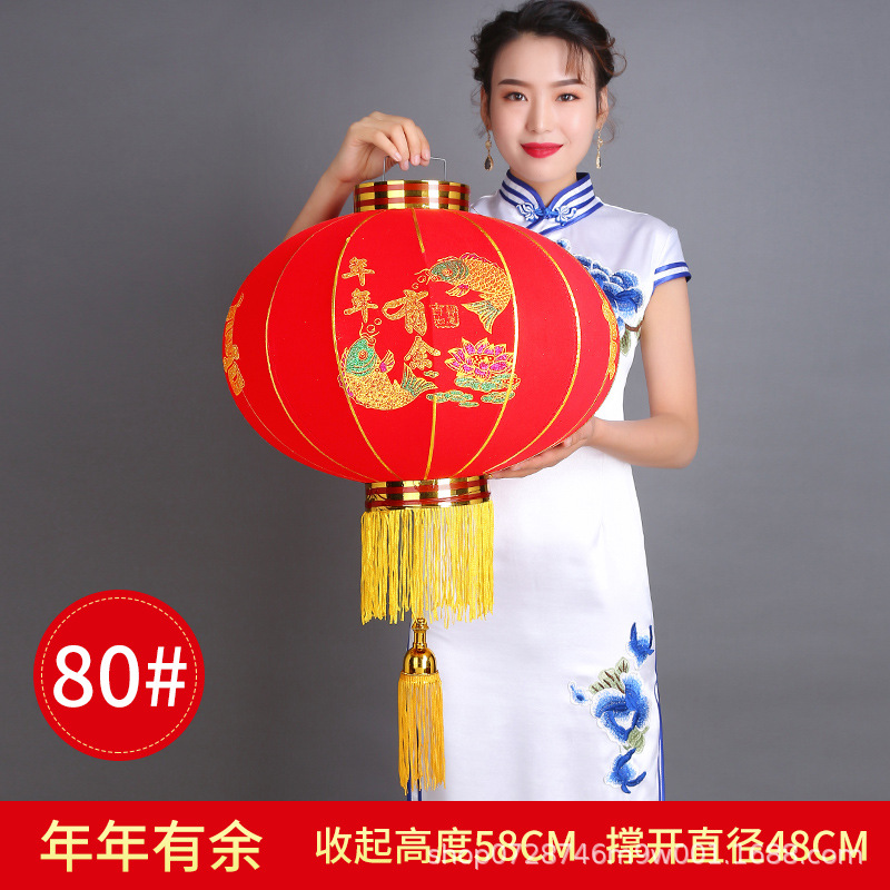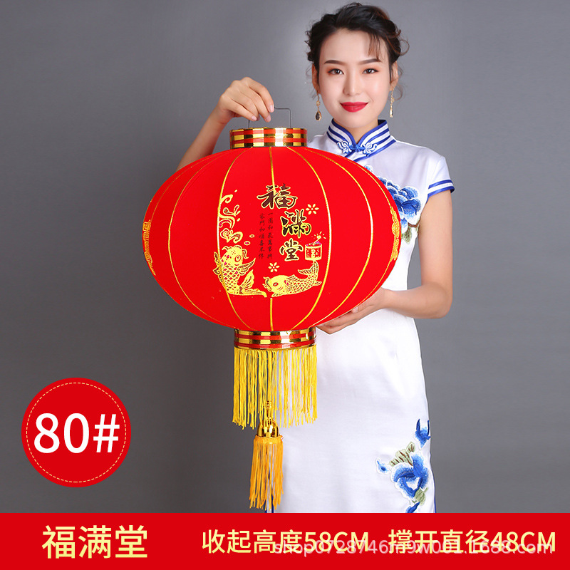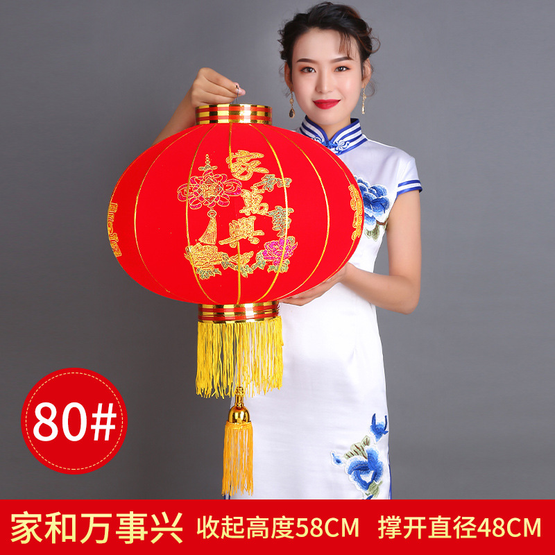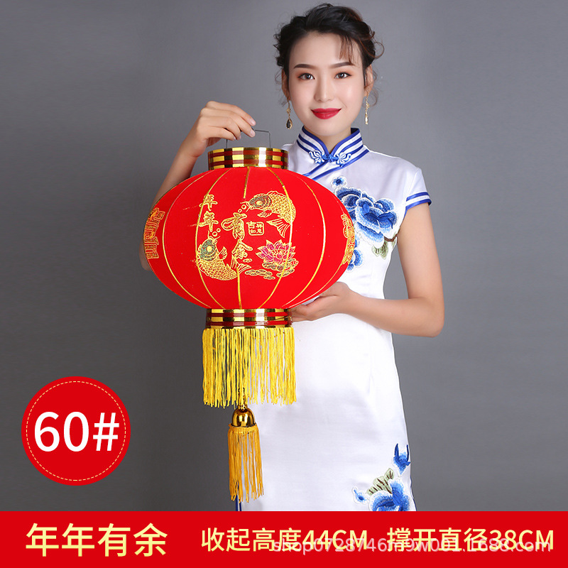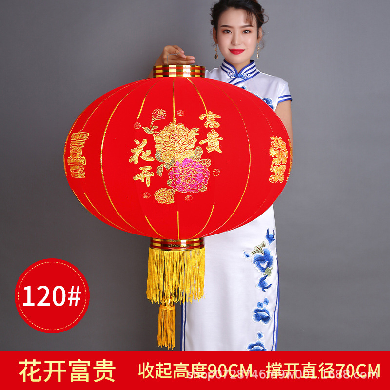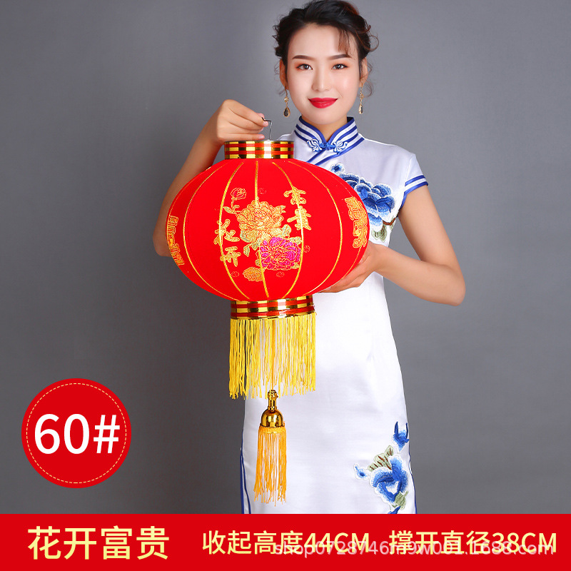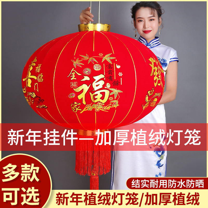 大红植绒灯笼欢度佳节灯笼新年春节元旦节日装饰长杆植绒灯笼批发