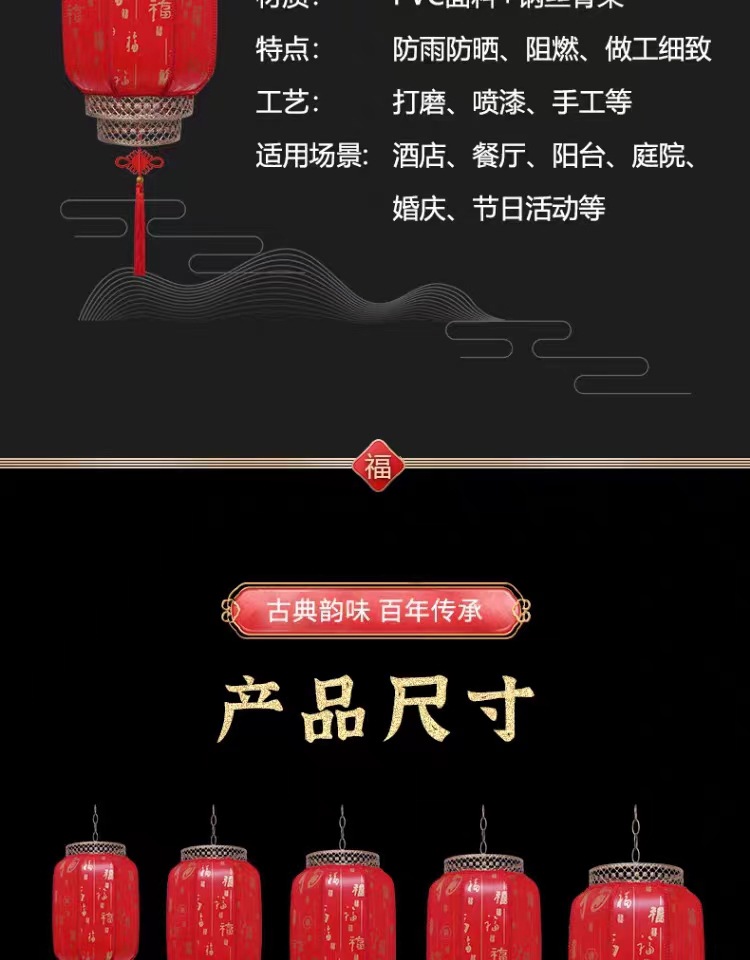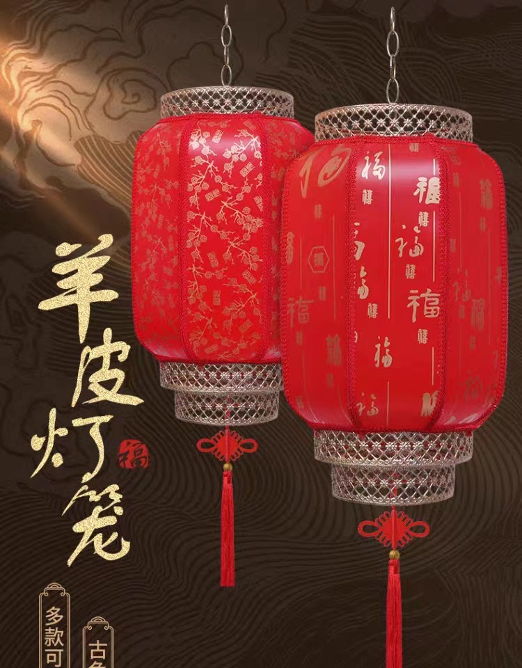 羊皮灯笼吊灯中国风户外防水饭店广告印字中式仿古红灯笼街道挂饰