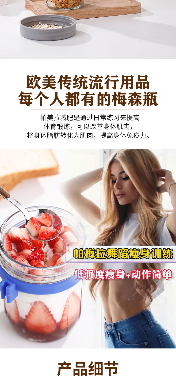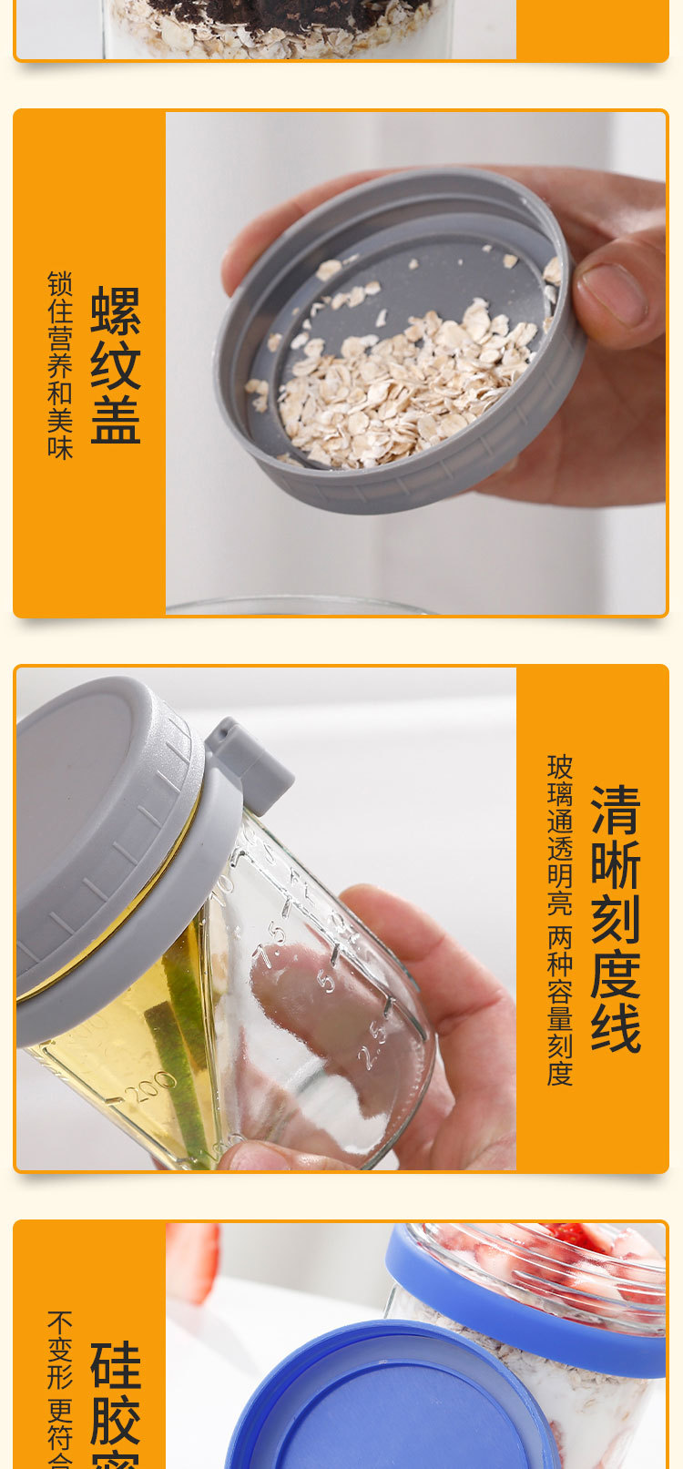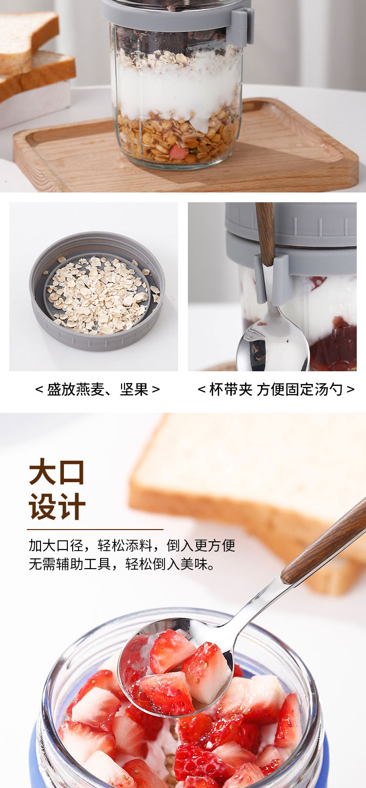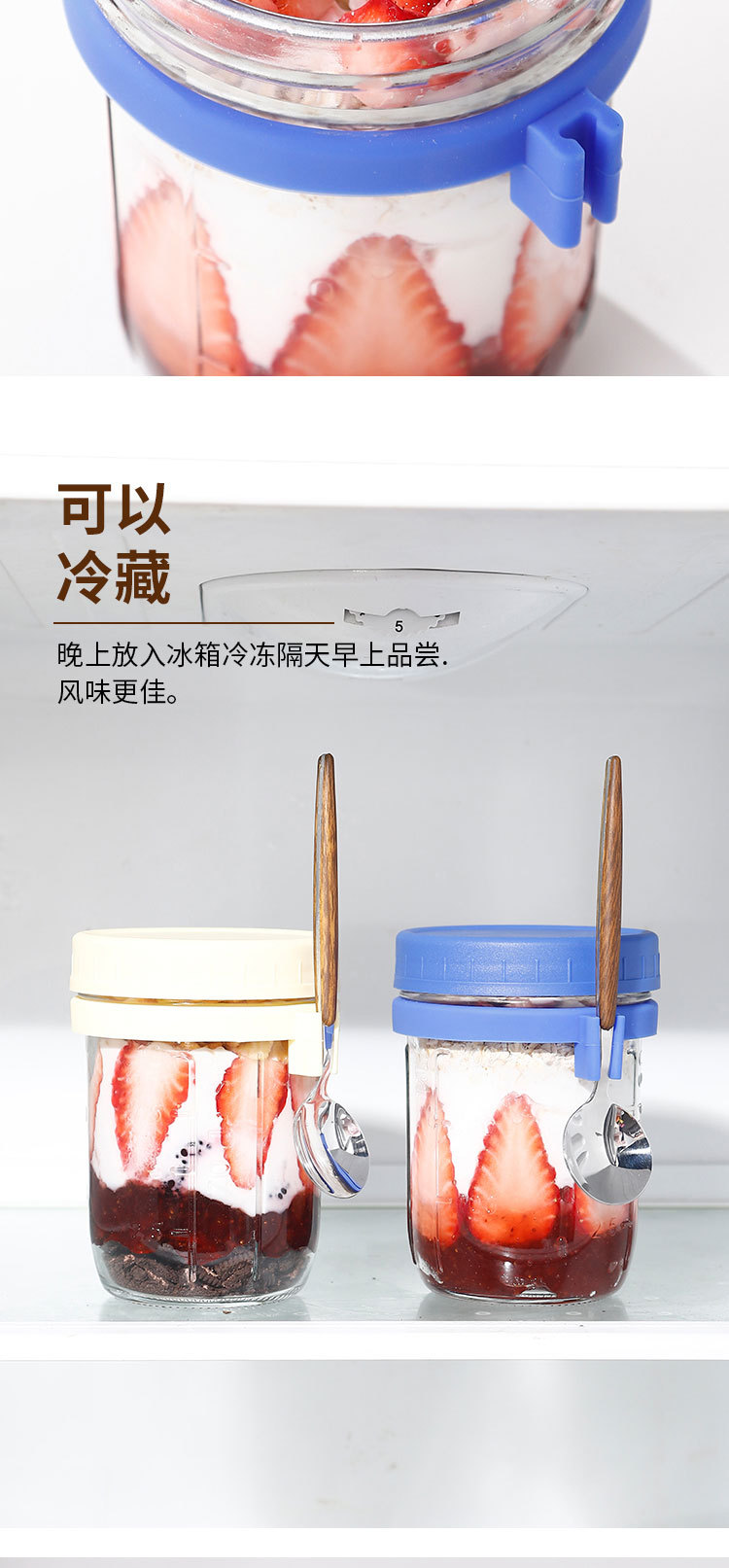 燕麦杯有盖玻璃带勺带刻度便携早餐杯梅森杯酸奶沙拉隔夜燕麦杯