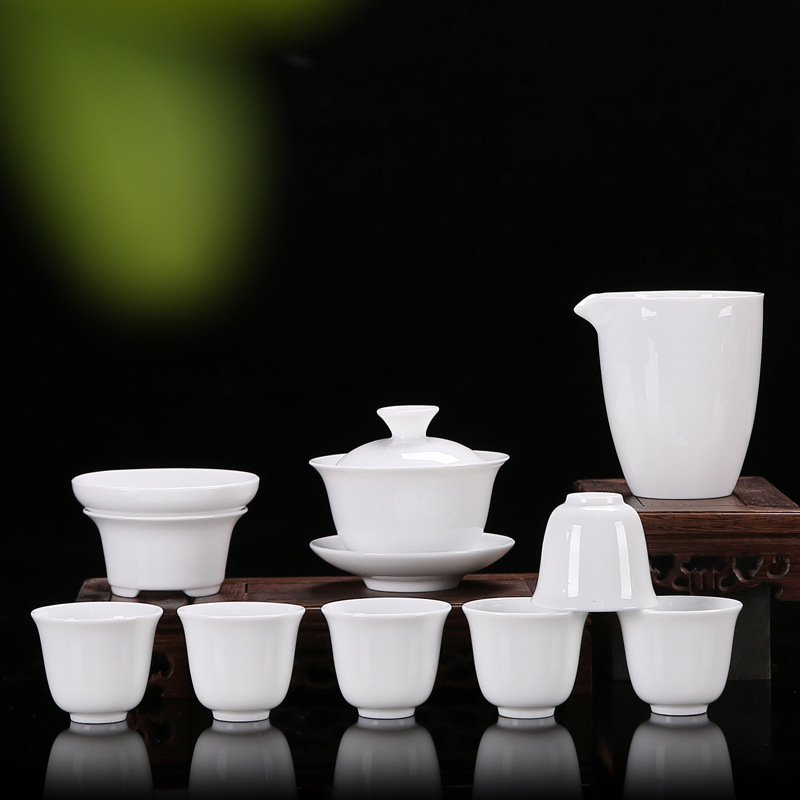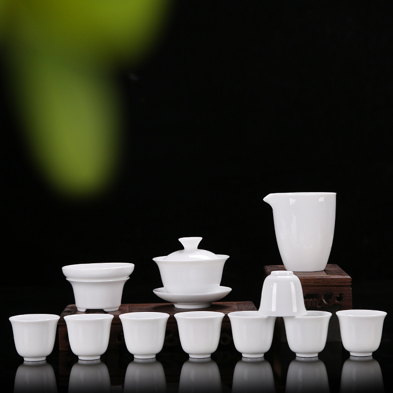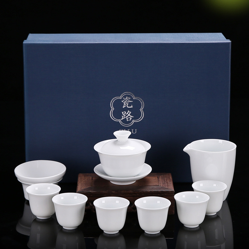 高档礼盒装陶瓷功夫茶具家用办公室德化白瓷盖碗茶杯整套刻字logo