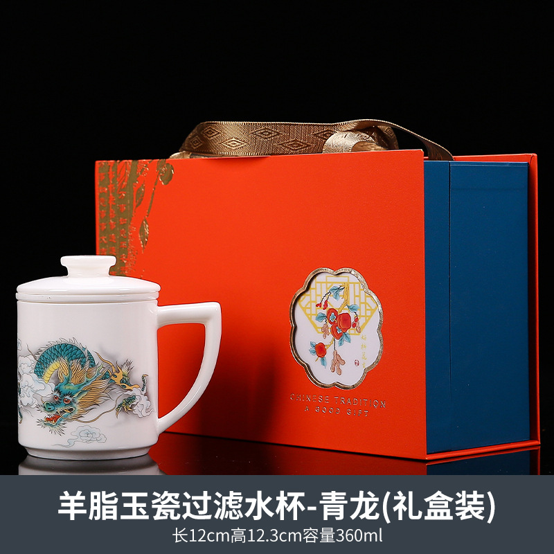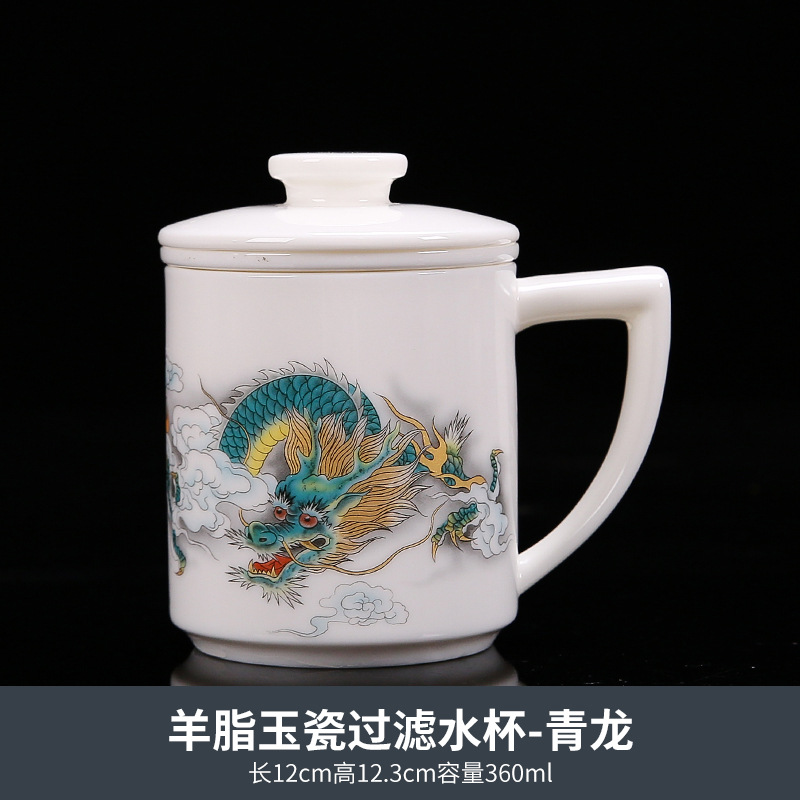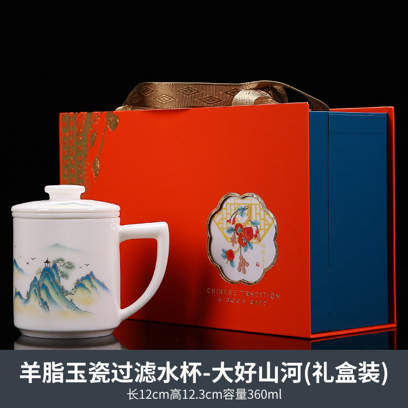 羊脂玉茶杯茶水分离陶瓷马克杯带盖泡茶过滤个人专用高档杯子送礼