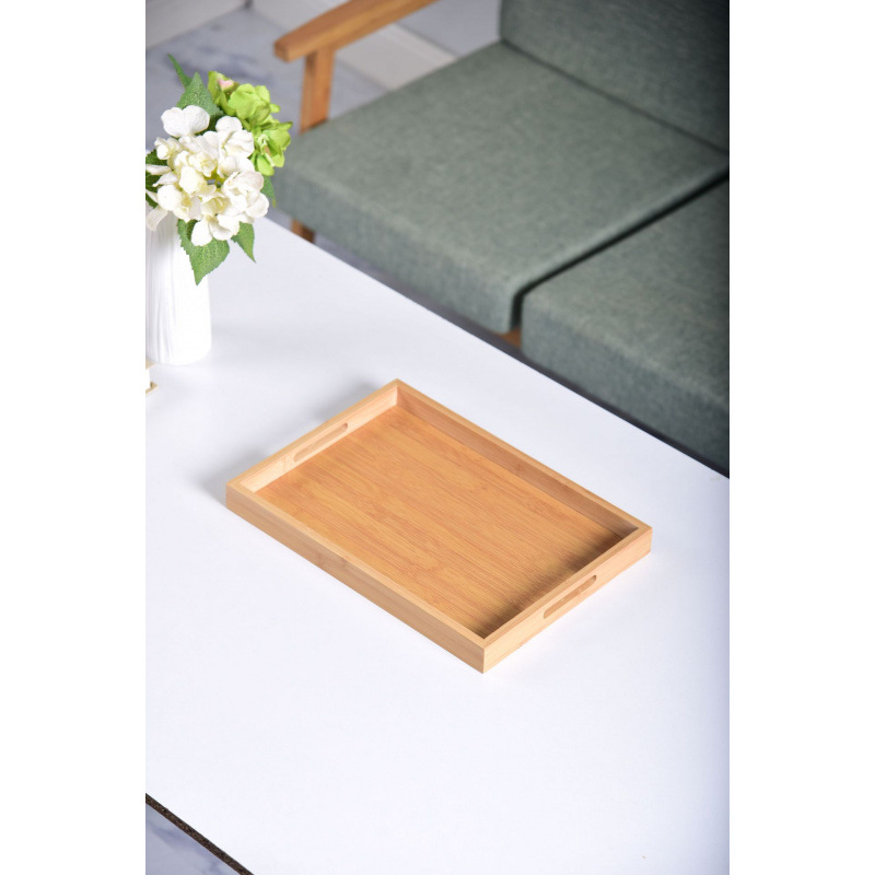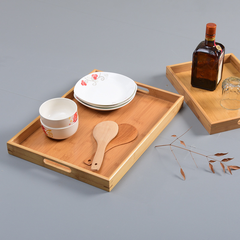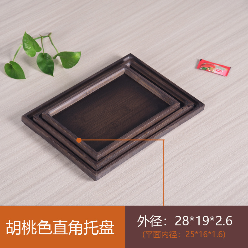 竹制拉手托盘长方形家用竹茶盘酒店上菜水杯盘子圆形鸡翅木色盘子