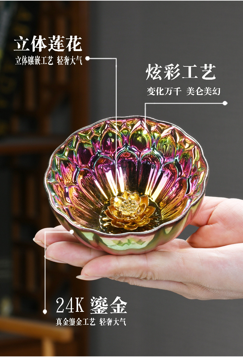 磁性能量杯 离子电镀 花瓣主人杯 孔雀杯佛莲杯个人茶杯品茗单杯