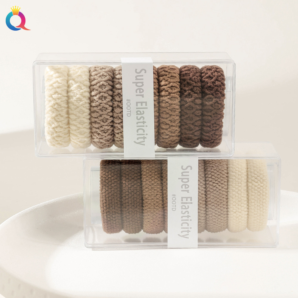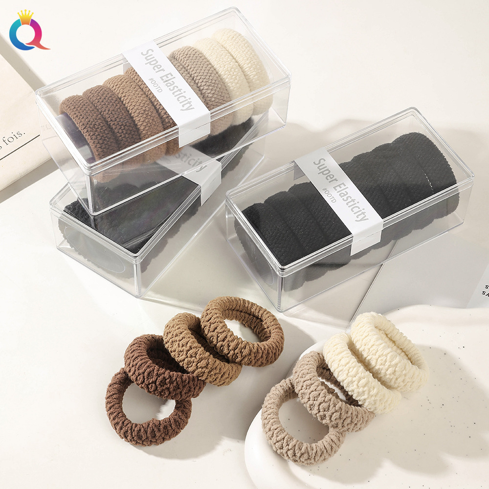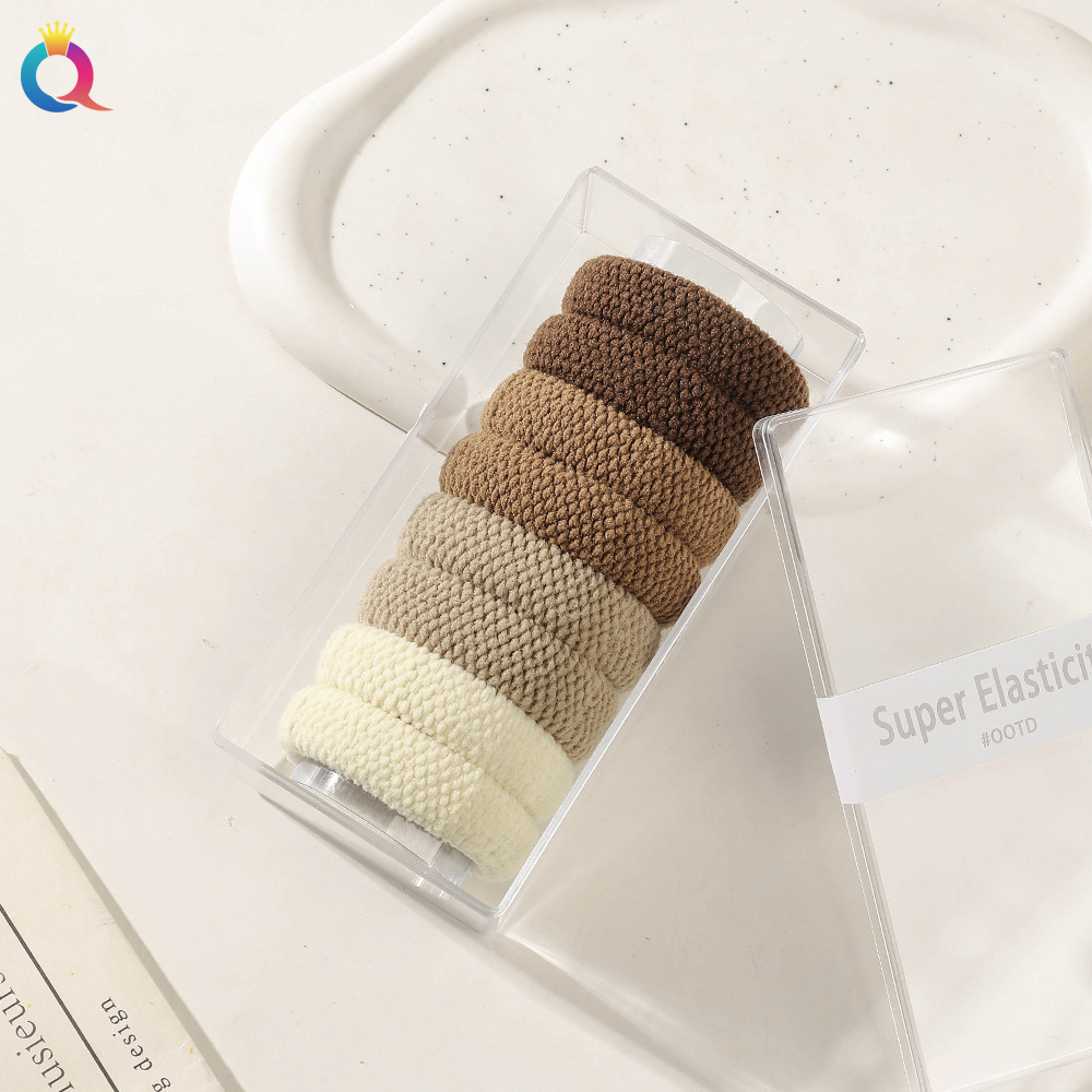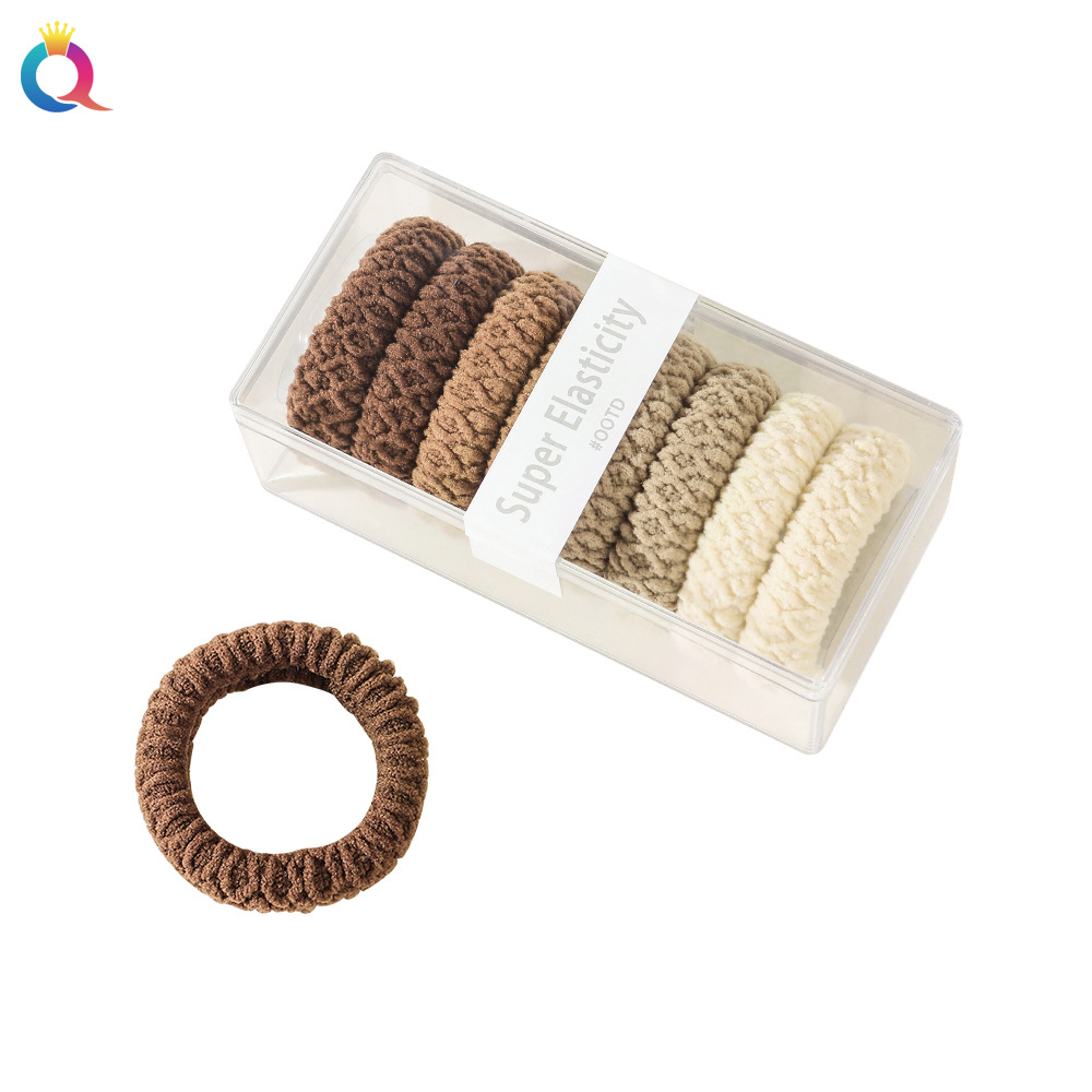 奇阅高弹力毛线圈粗款盒装发绳扎头发皮筋高级感无缝头绳发圈批发