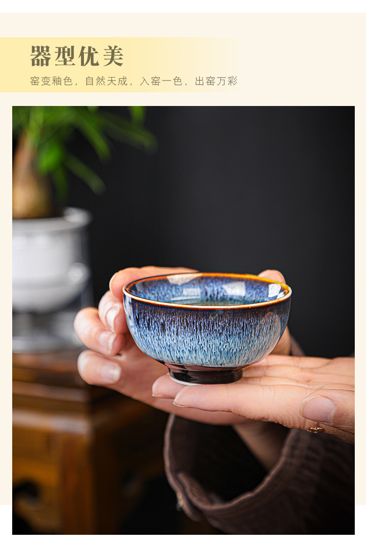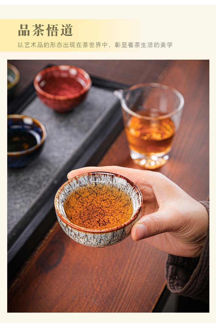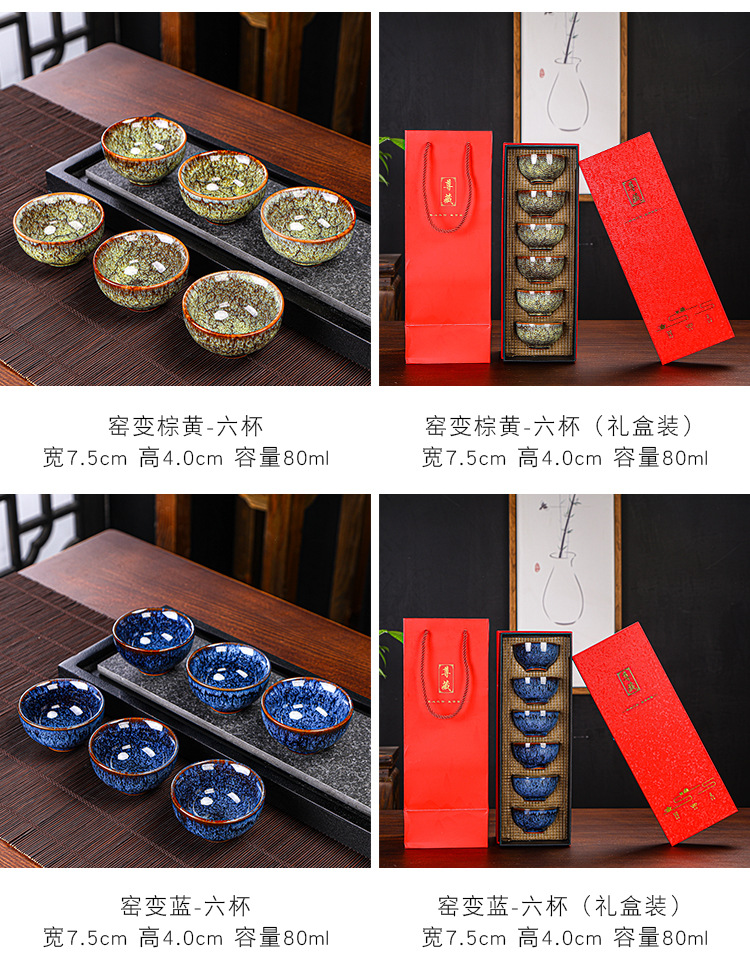 天目盏窑变6只单茶杯陶瓷多彩茶盏建盏六色家用喝茶小茶碗礼盒装