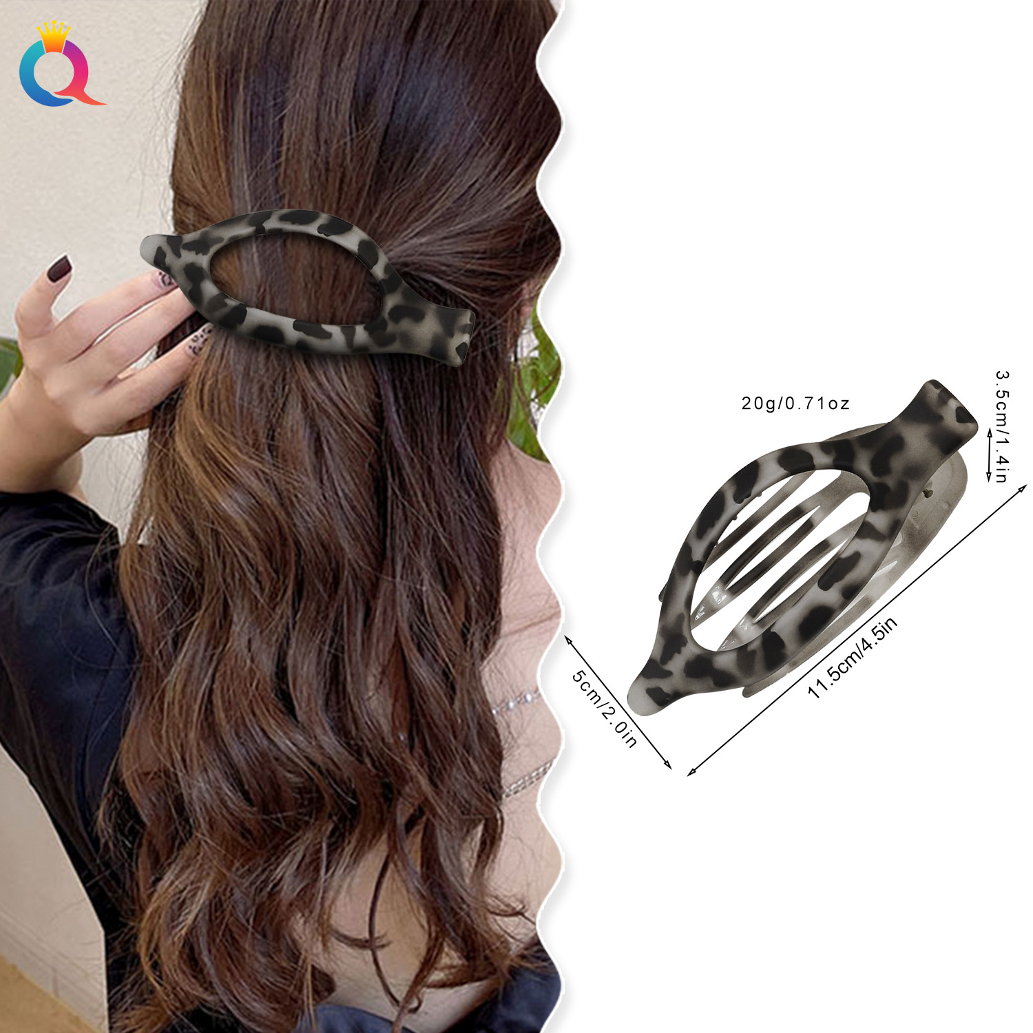 奇阅跨境PC椭圆豹纹发夹盘发抓夹马尾夹发卡后脑勺鸭嘴夹发饰批发