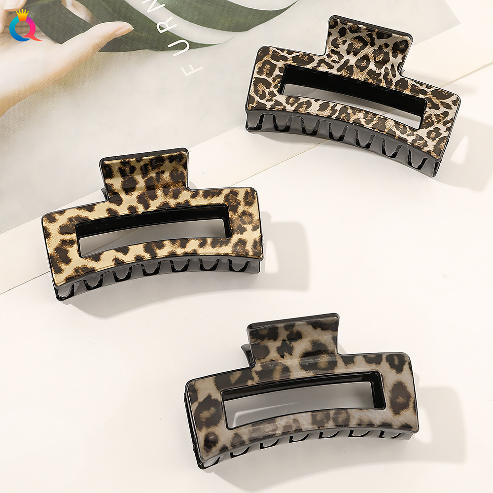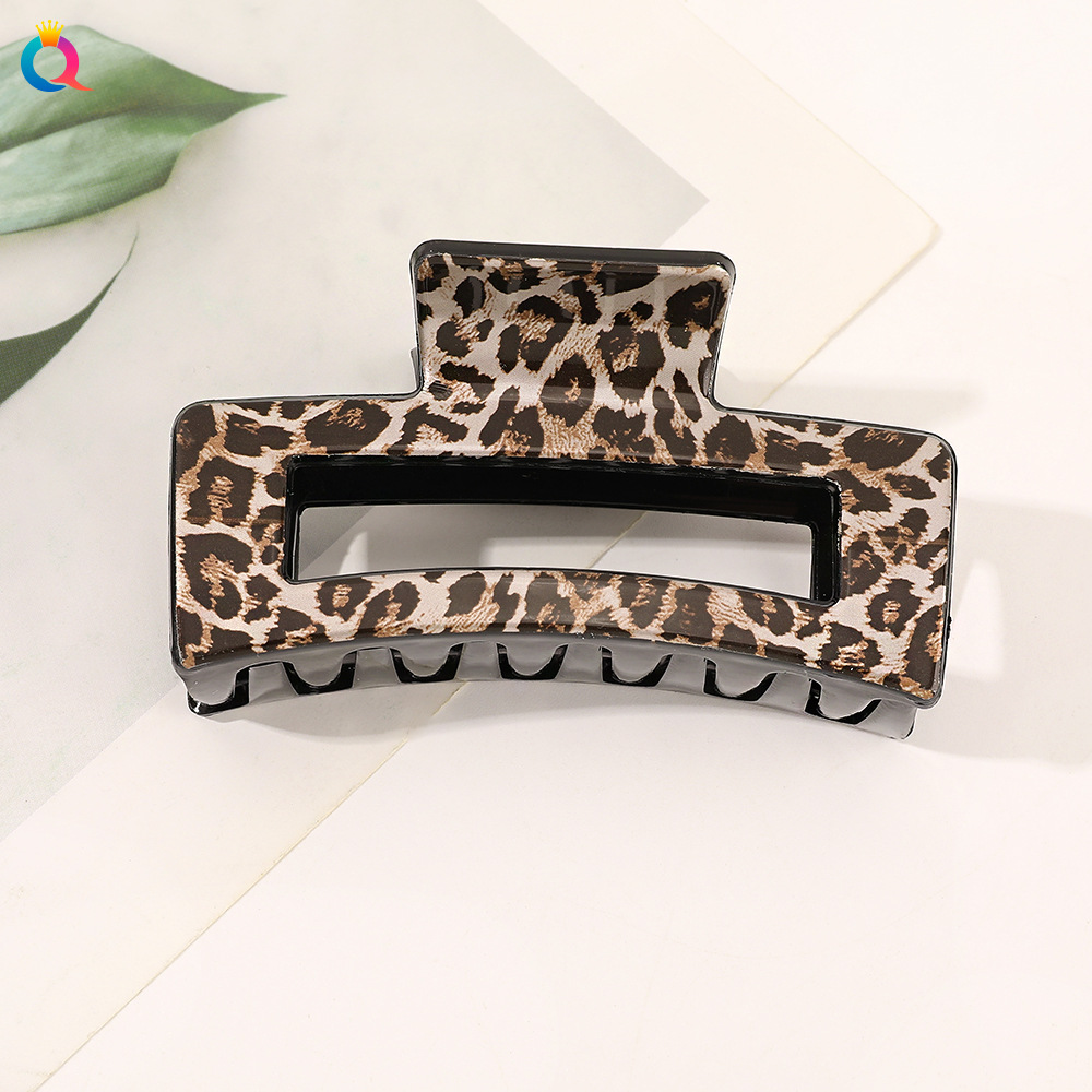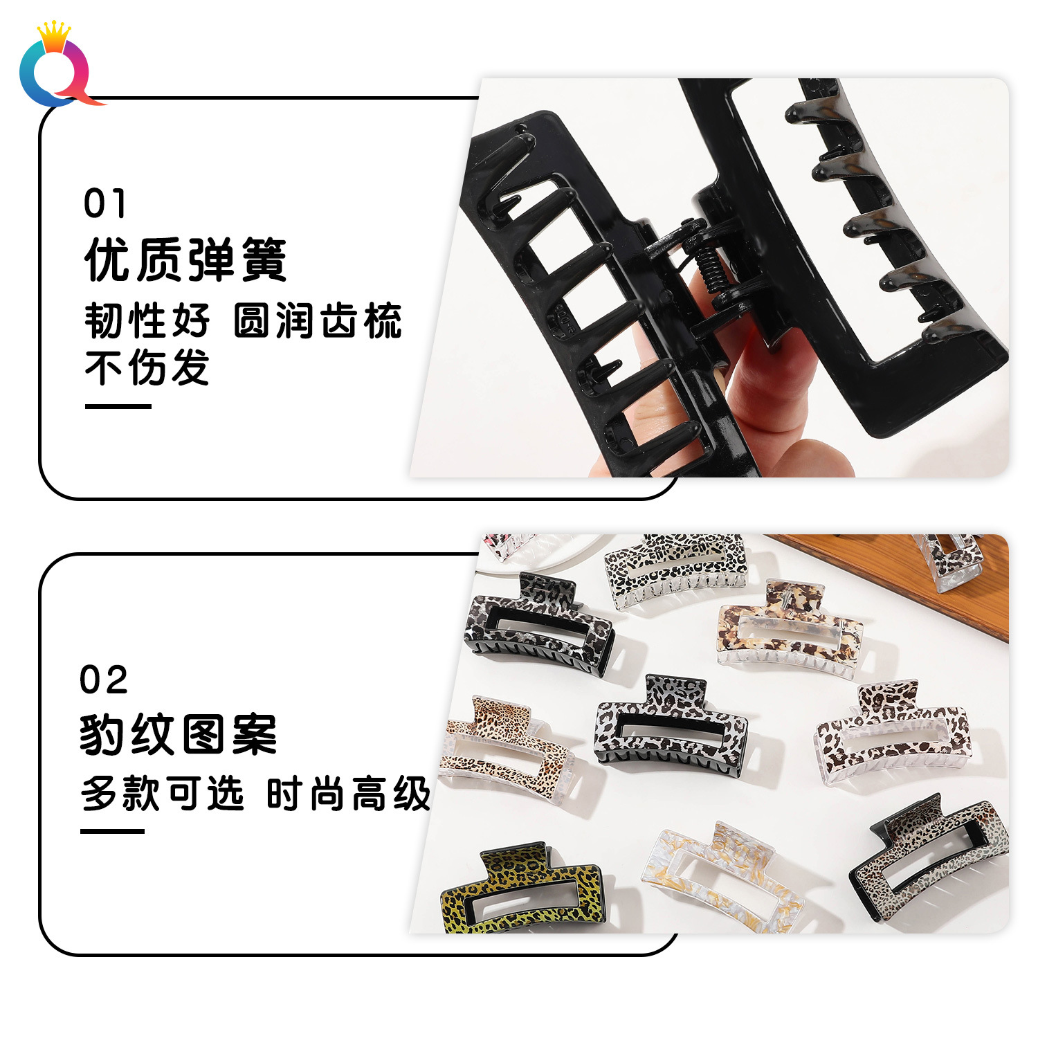 奇阅跨境印花发夹鲨鱼夹气质豹纹抓夹大号夏季高级感夹子发饰批发