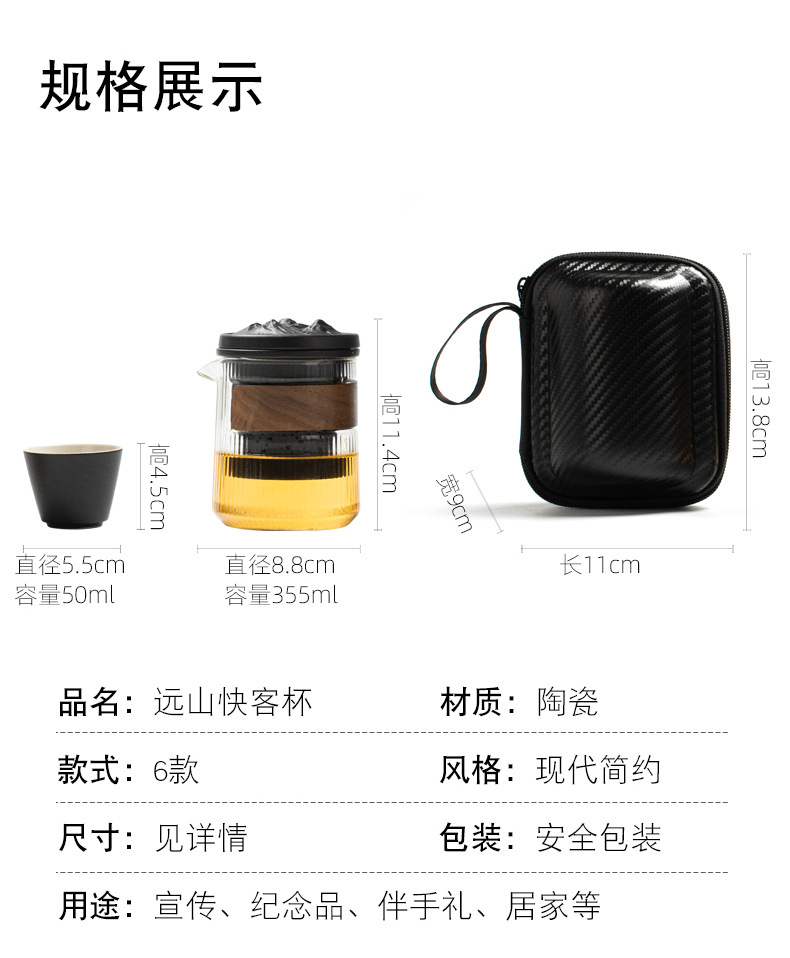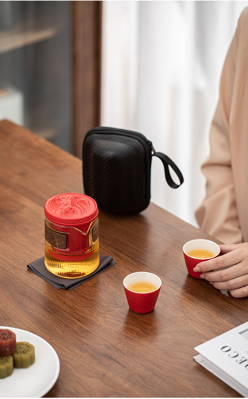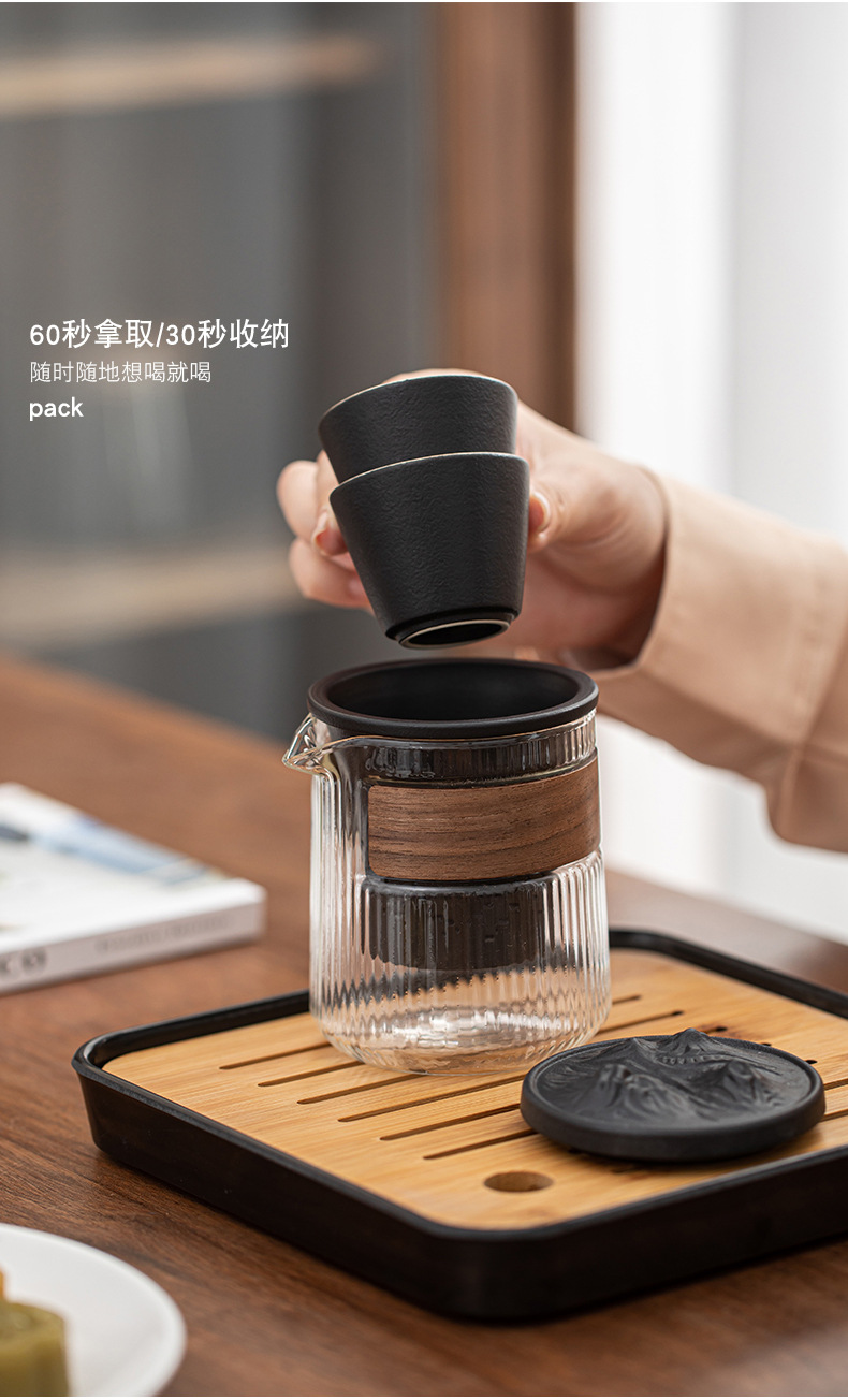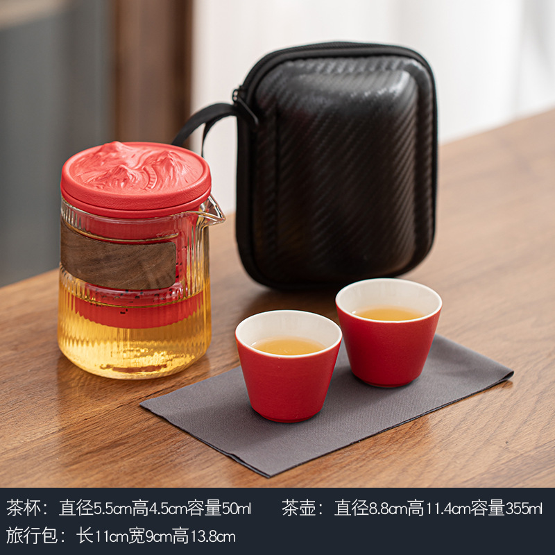 旅行茶具套装高档商务礼品户外一壶二杯露营快客杯随身泡茶壶批发