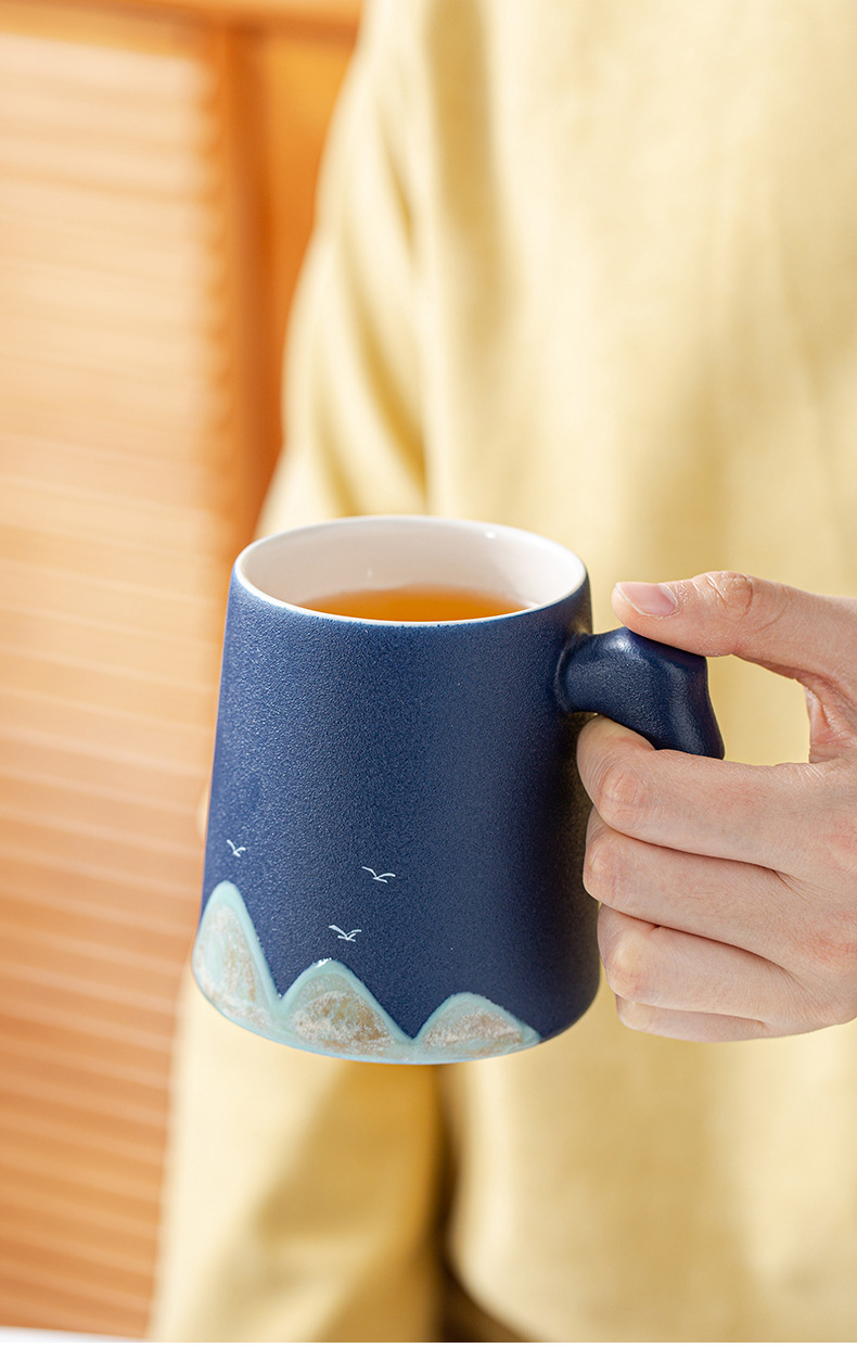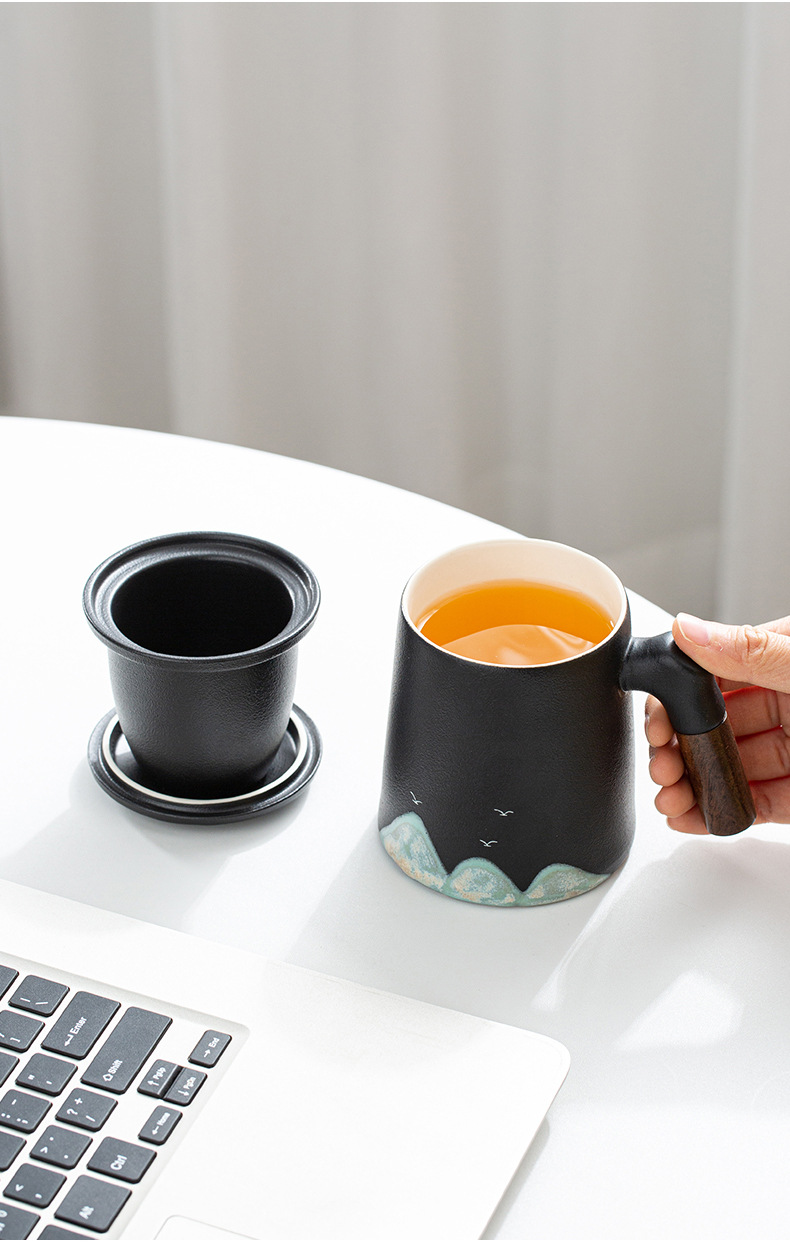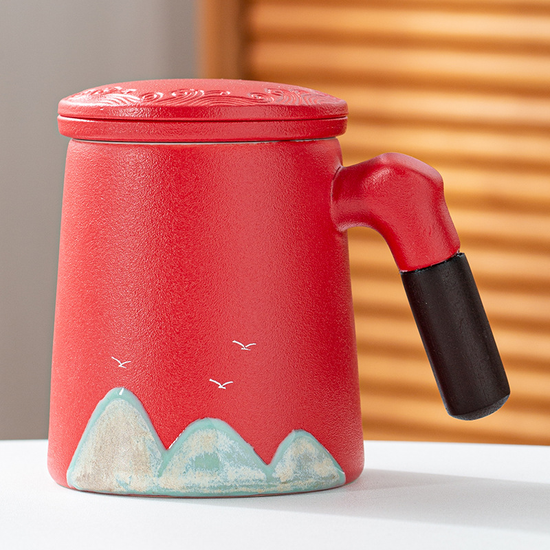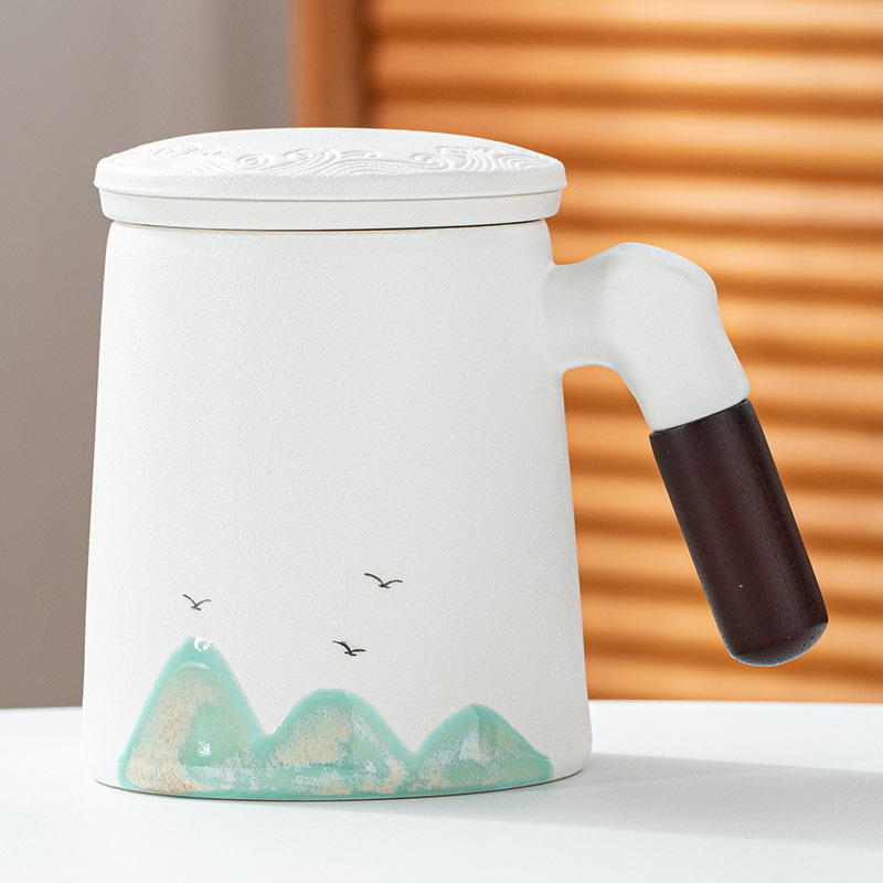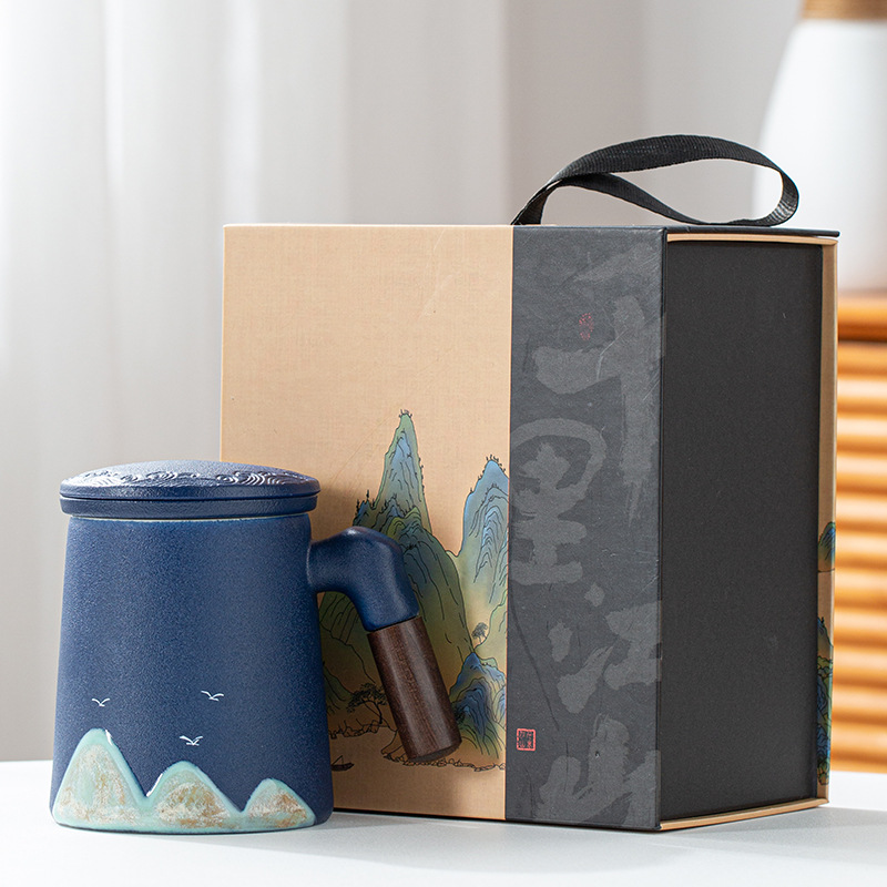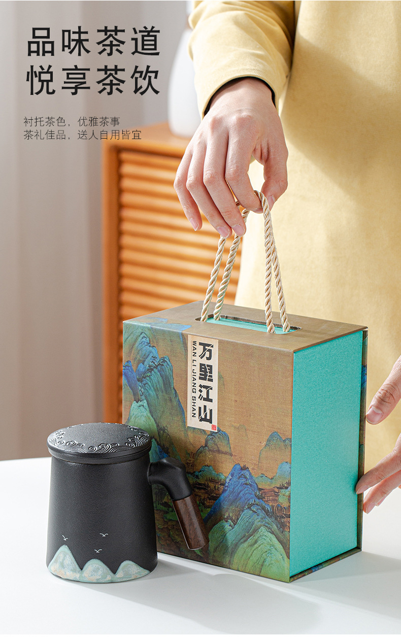 国潮陶瓷办公杯水杯万里江山手绘泡茶杯茶水分离过滤茶杯礼品杯子