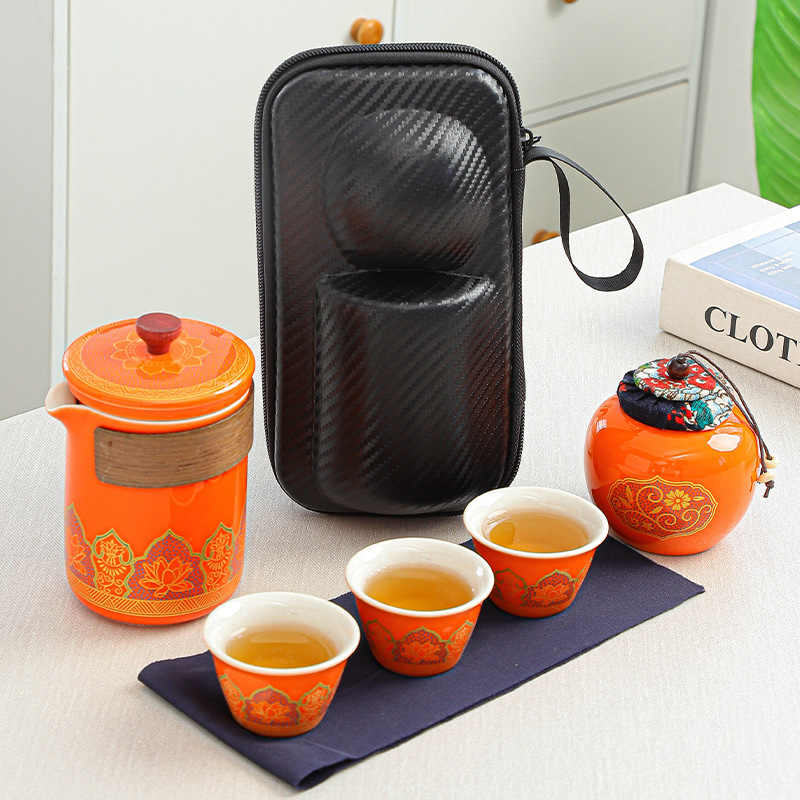 旅行茶具套装便携式随身快客杯户外陶瓷茶具活动商务节庆礼品批发