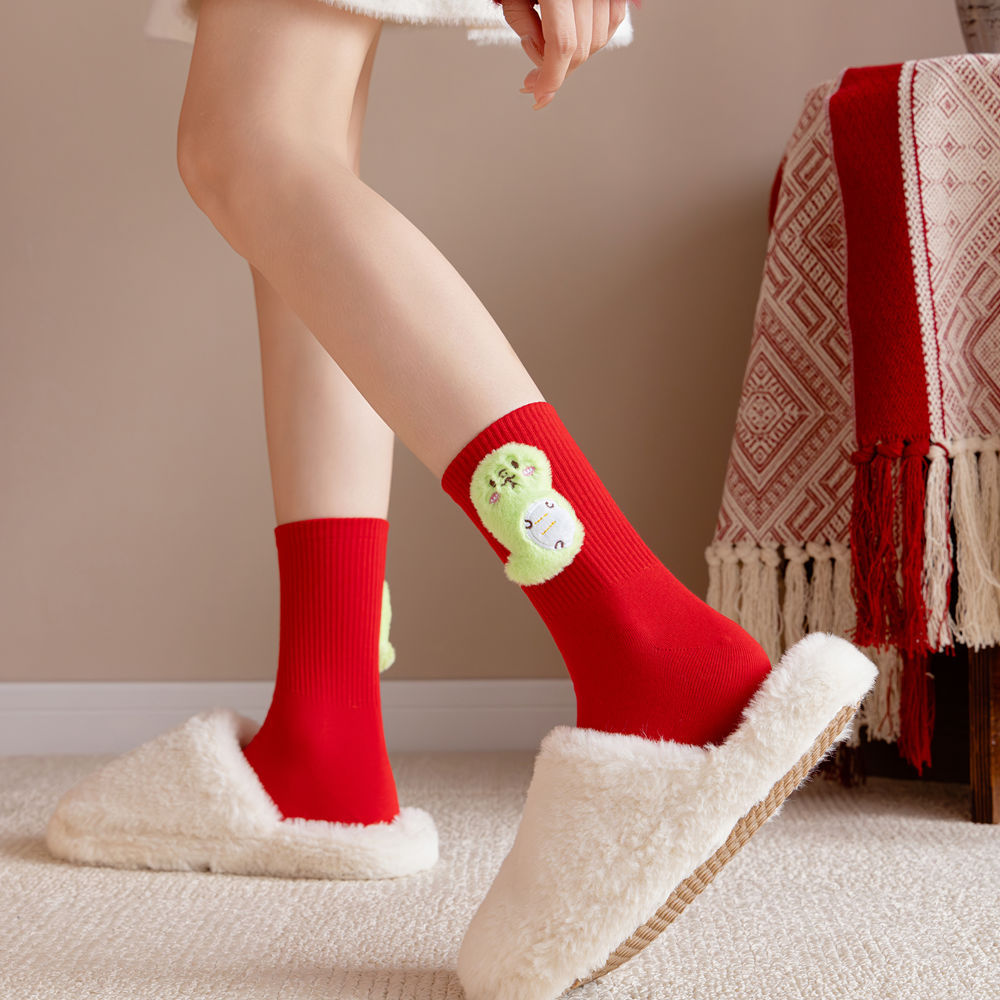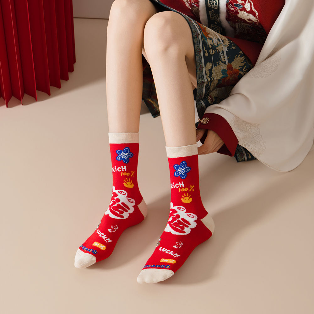 蛇年本命年红色袜子男女盒装属蛇中筒袜礼物新年礼盒装暴富发财袜