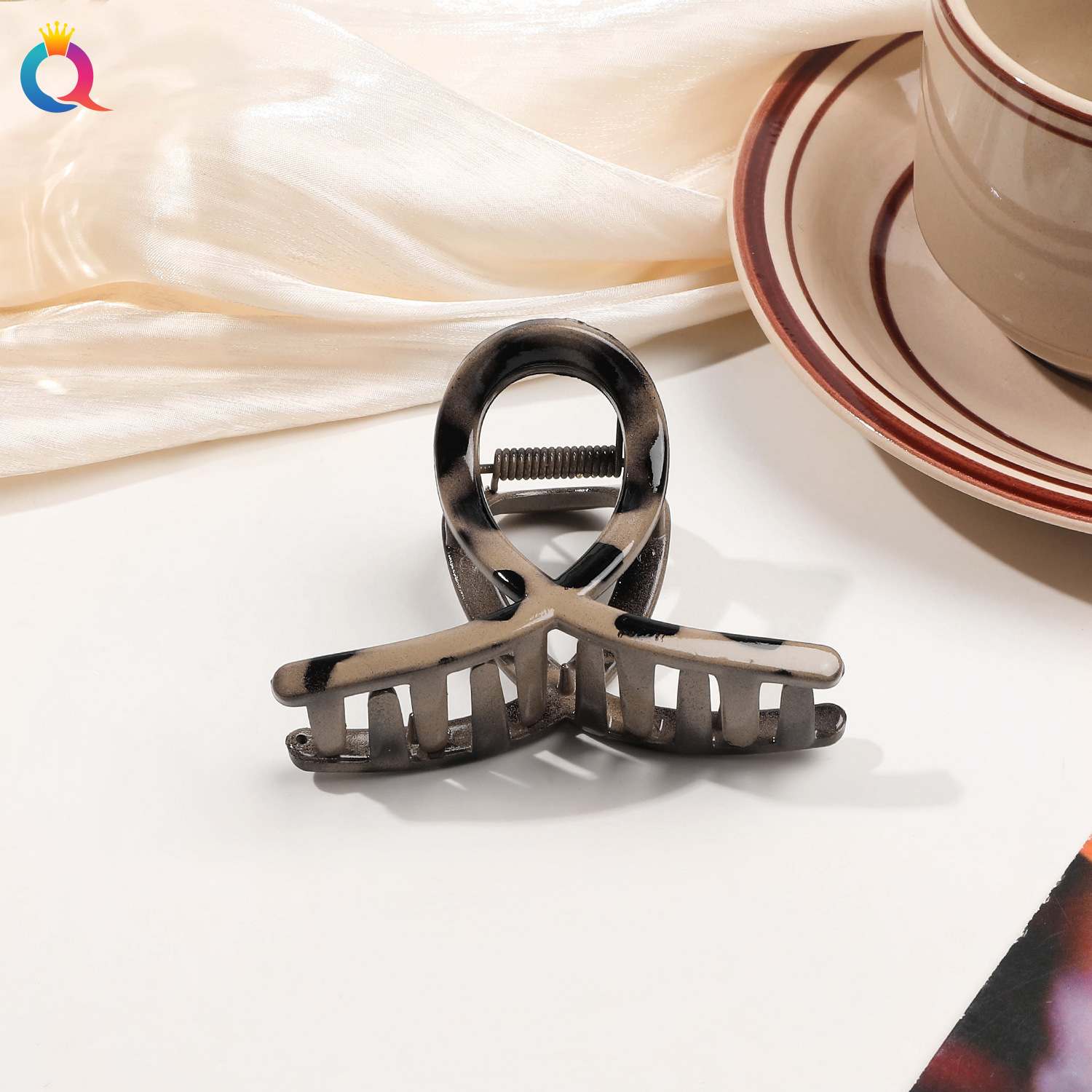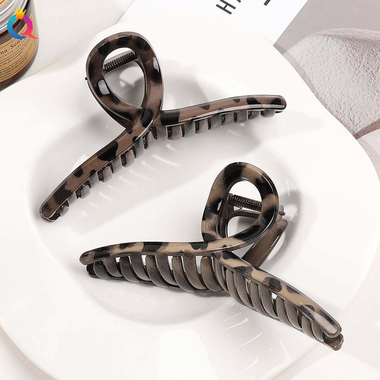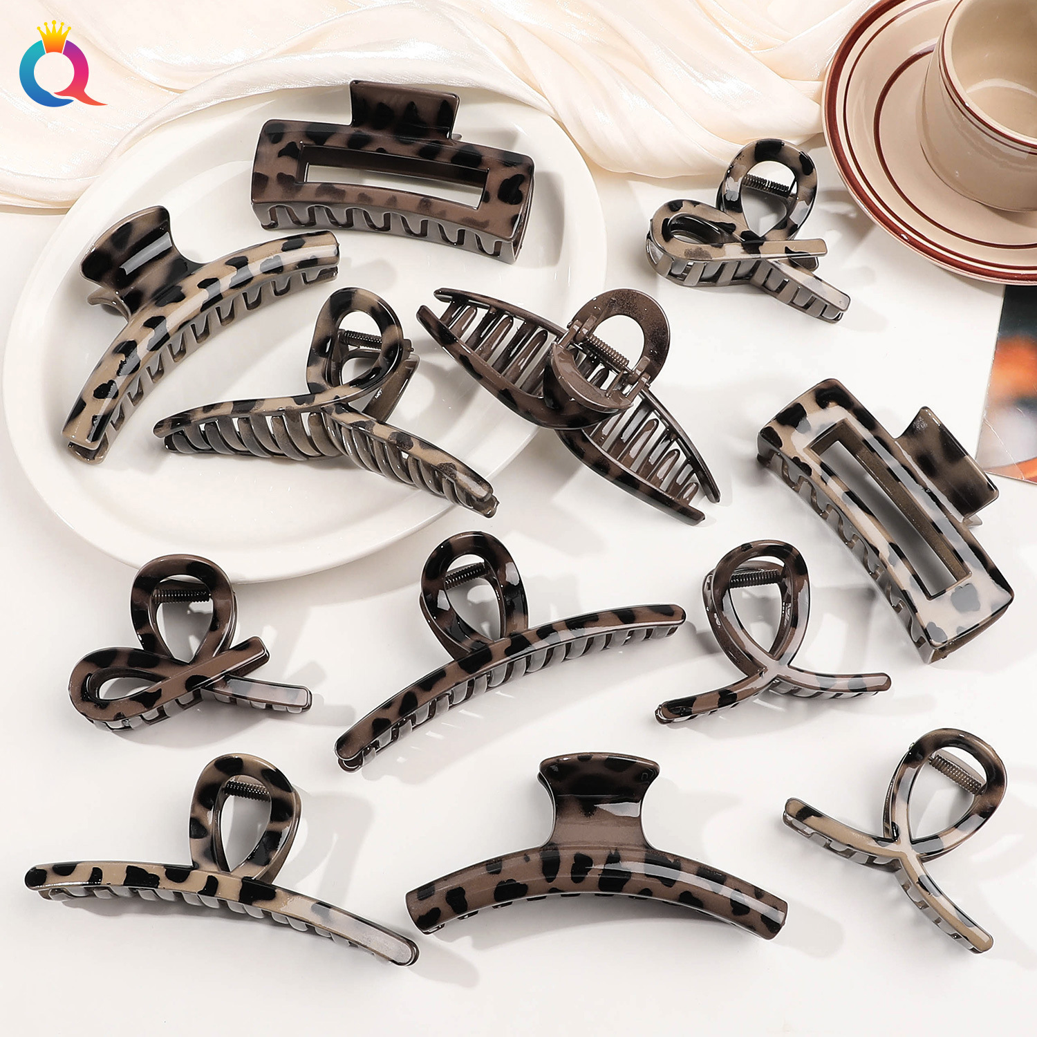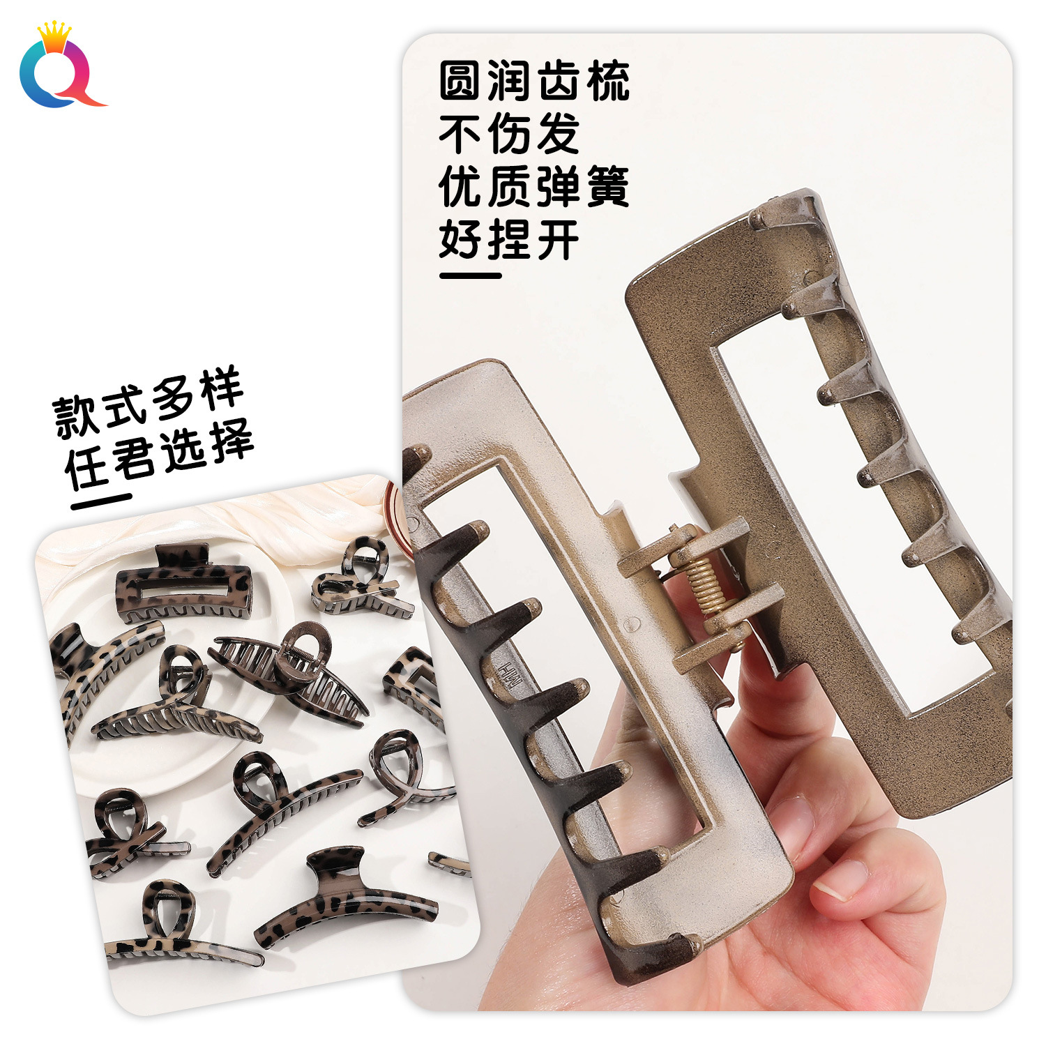 奇阅跨境豹纹发夹气质盘发抓夹后脑勺扎发鲨鱼夹子义乌发饰品批发