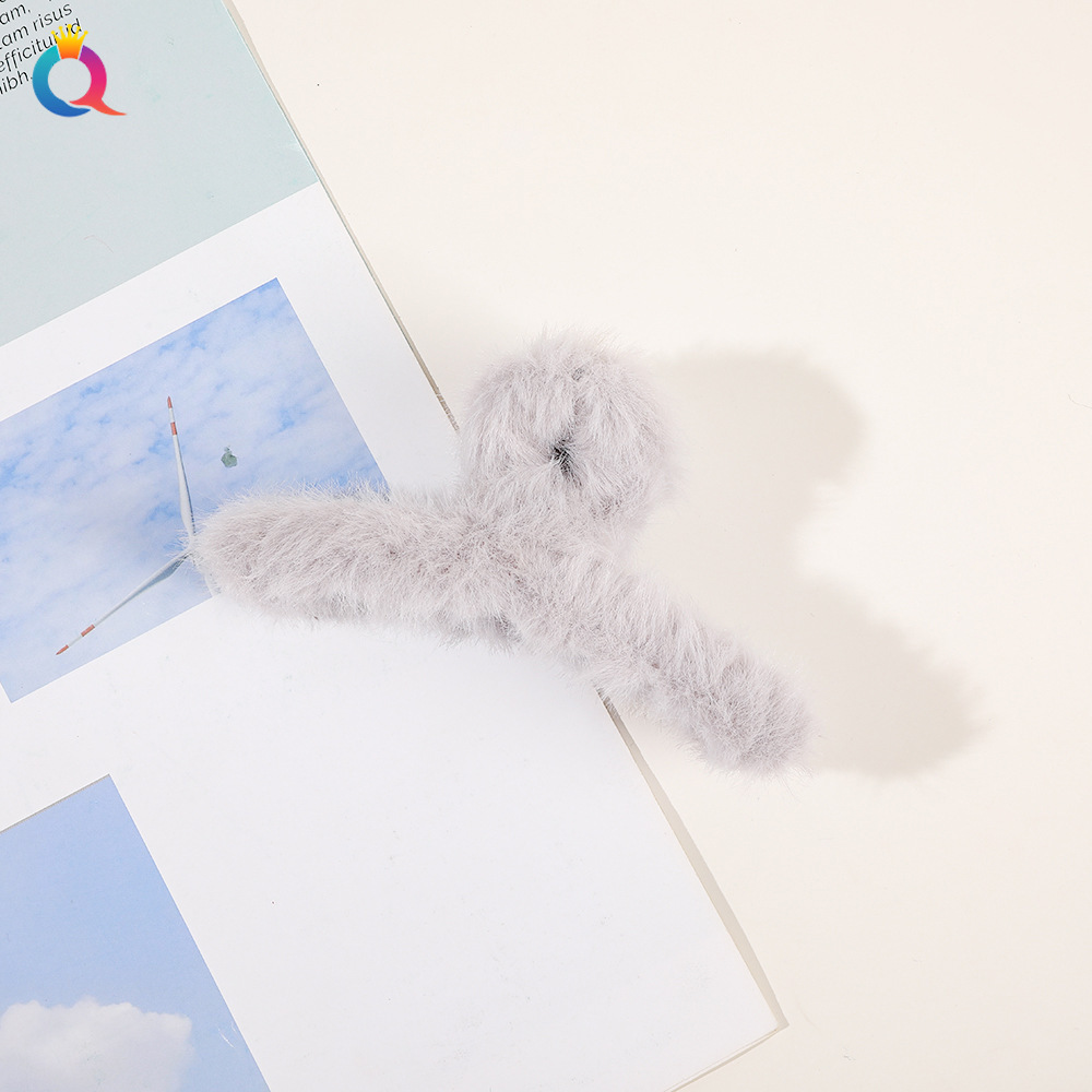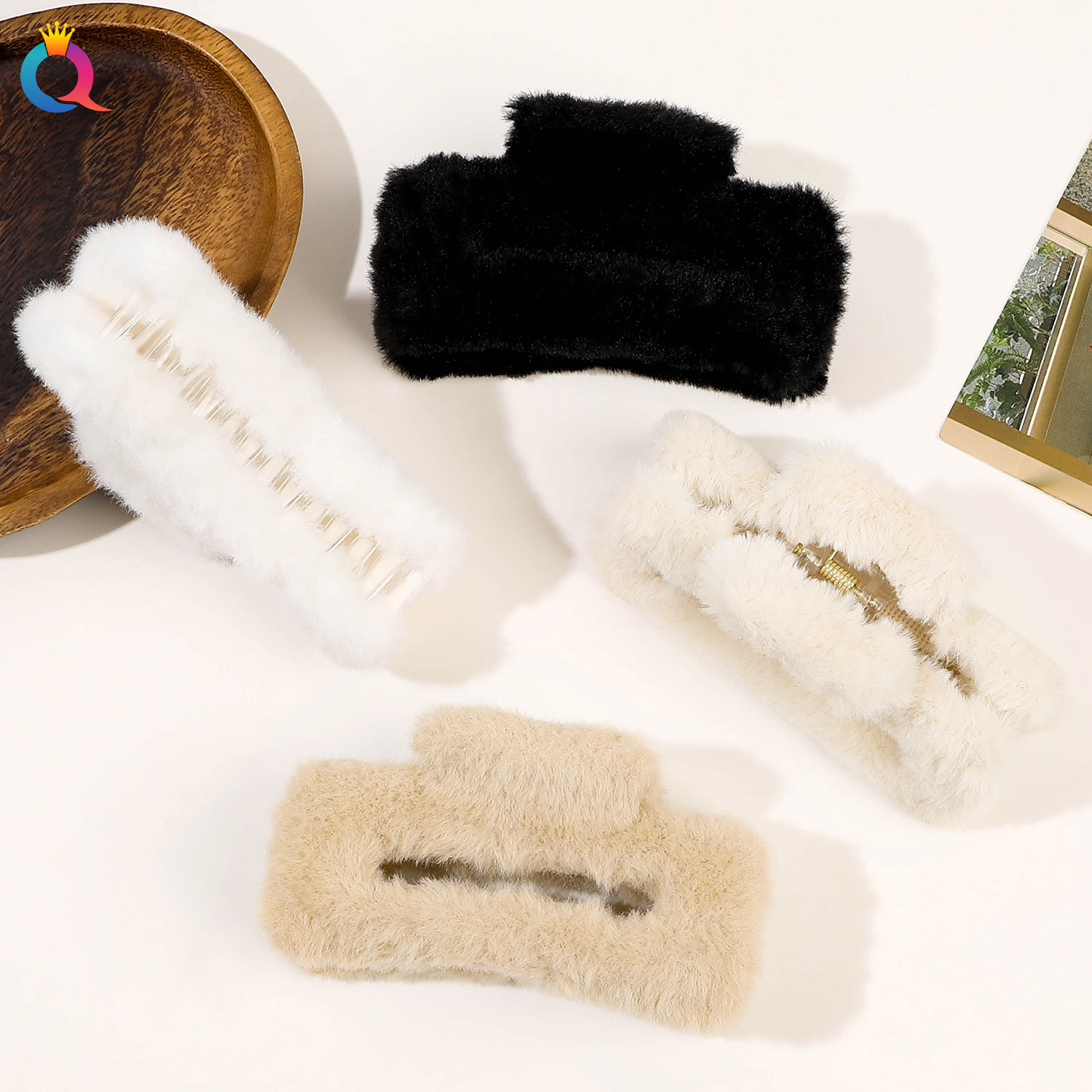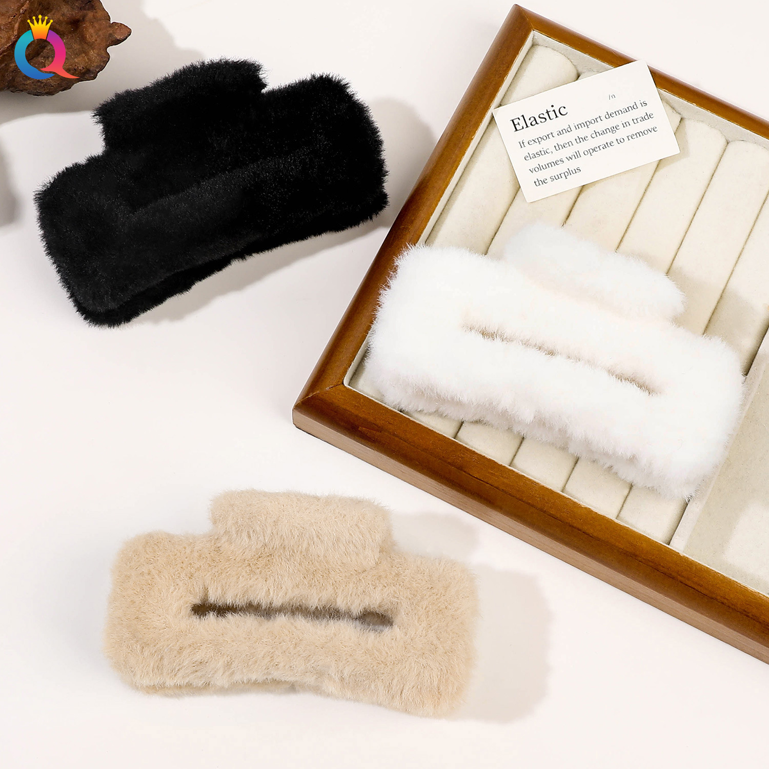 奇阅毛毛抓夹方形发夹盘发可爱鲨鱼夹子高级感毛绒发抓女发饰批发