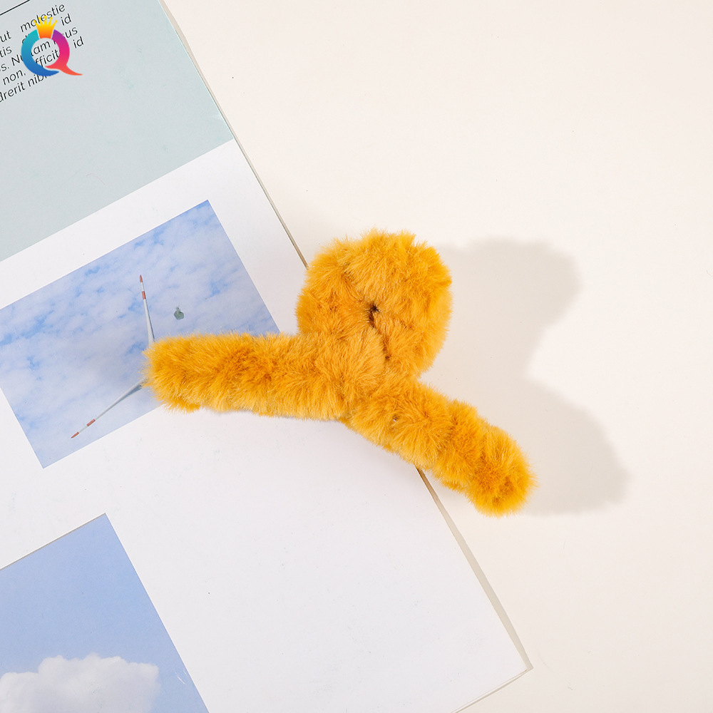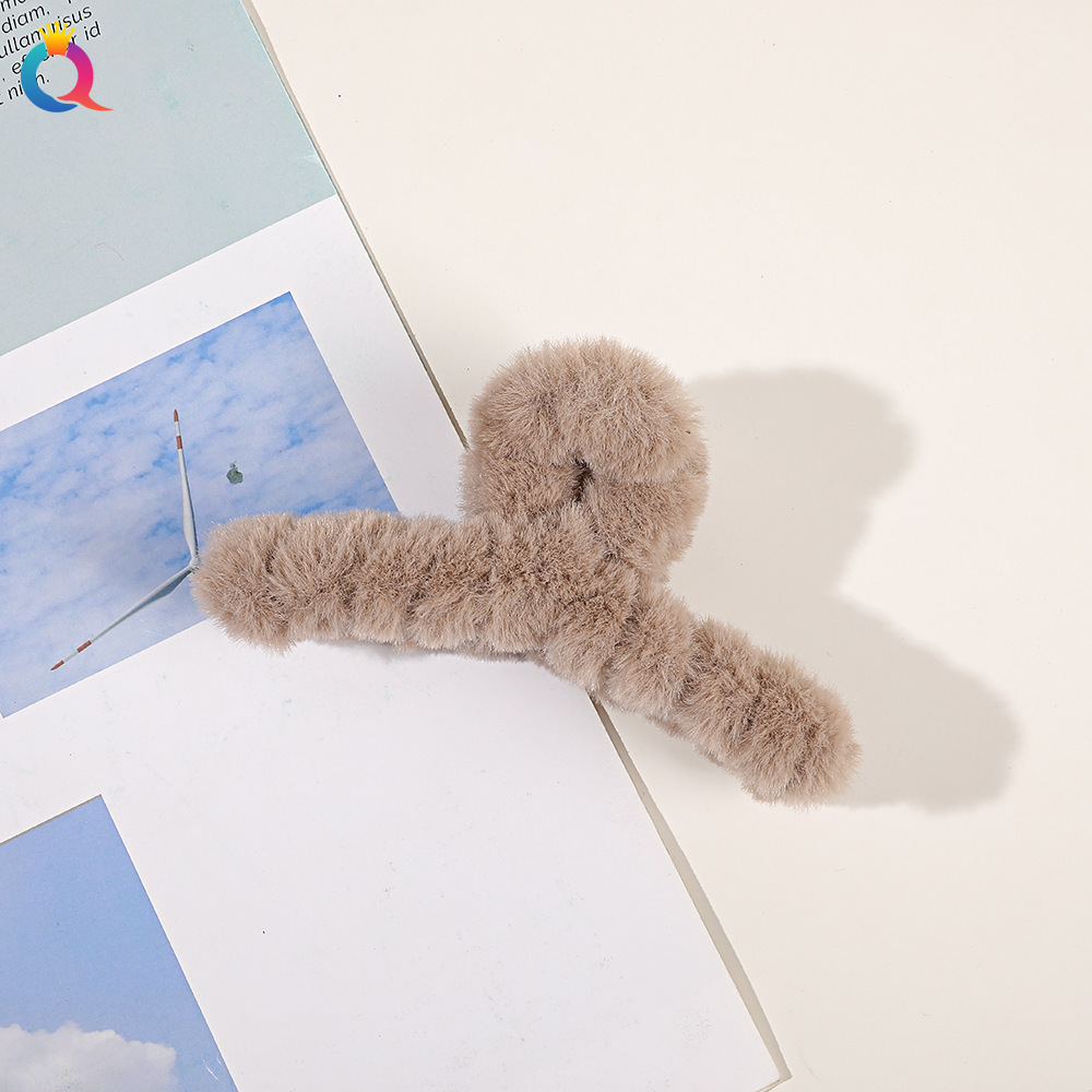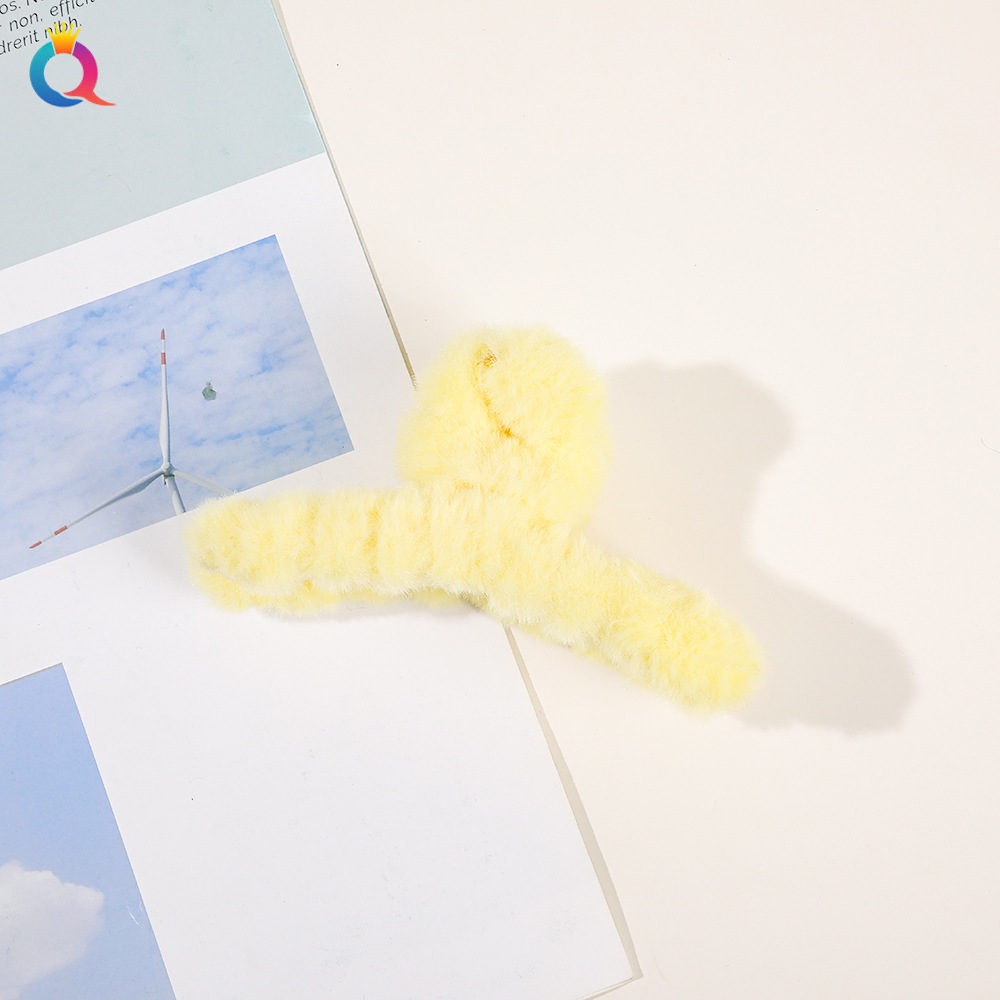 奇阅毛毛抓夹方形发夹盘发可爱鲨鱼夹子高级感毛绒发抓女发饰批发