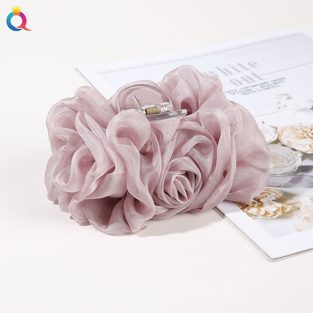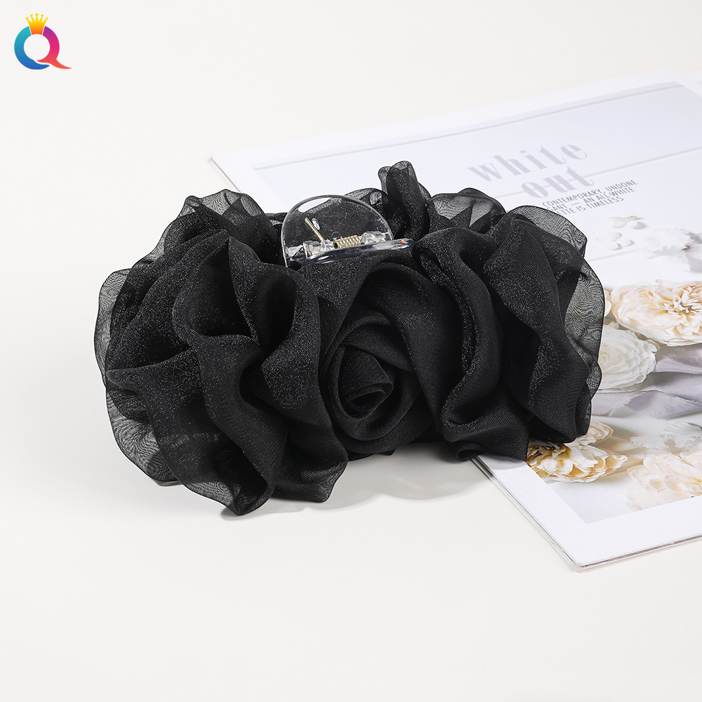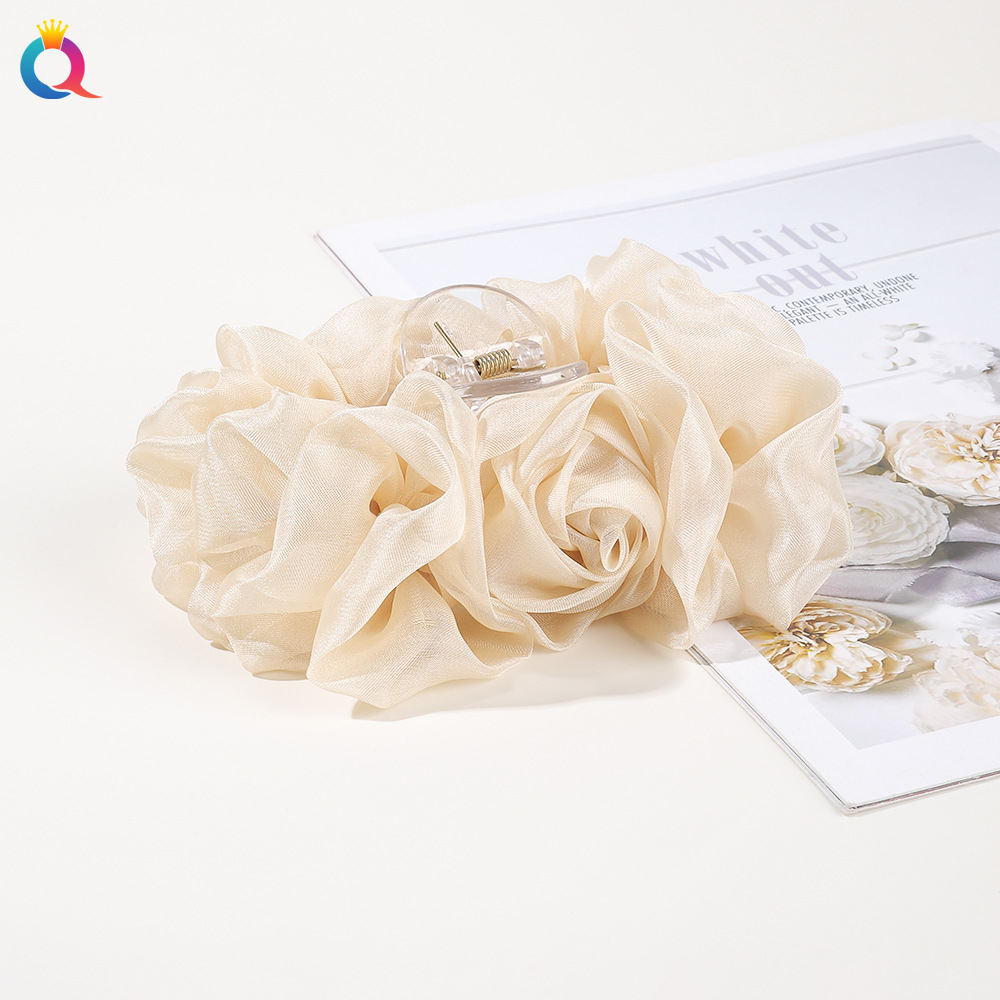 奇阅雪纺蝴蝶结发夹后脑勺盘发抓夹大号纯色发抓子发饰头饰品批发