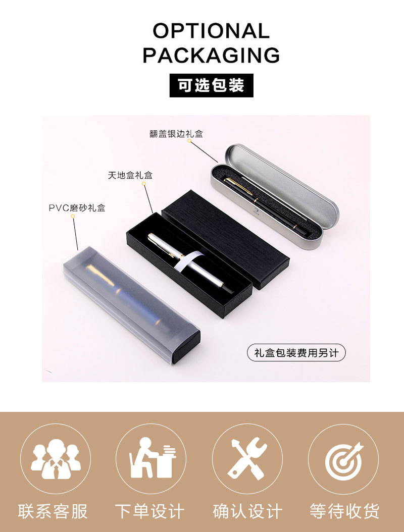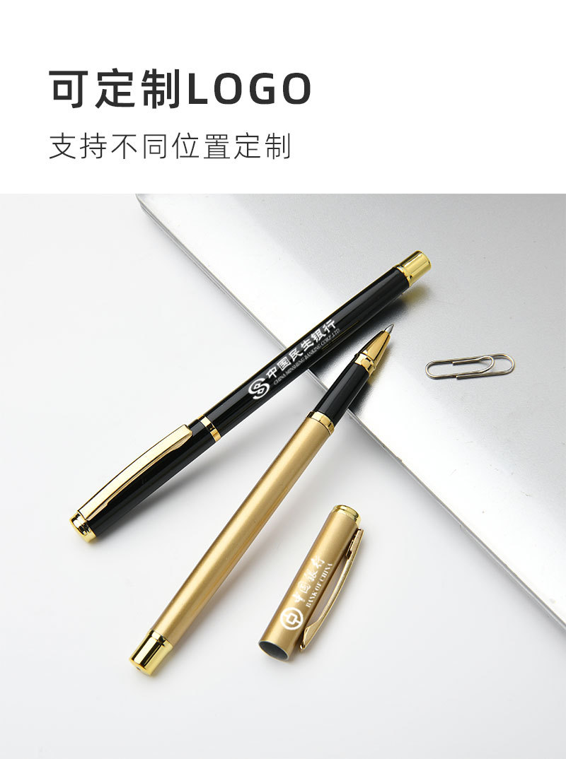 高档商务办公创意文具签字笔黑碳素定制LOGO广告金属中性笔批发