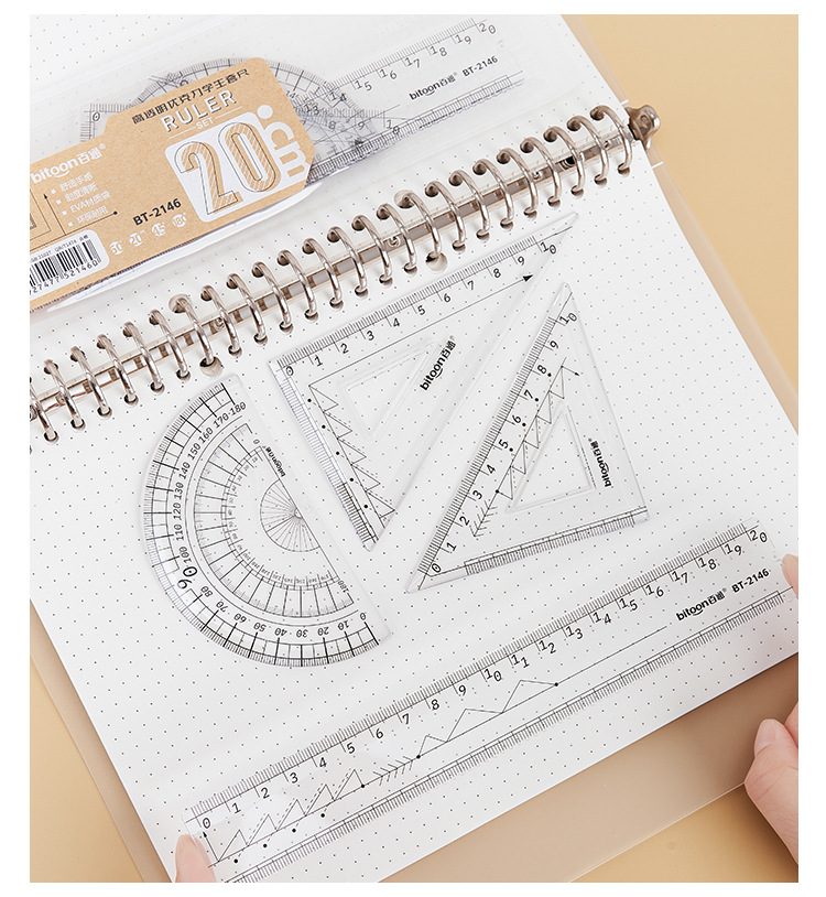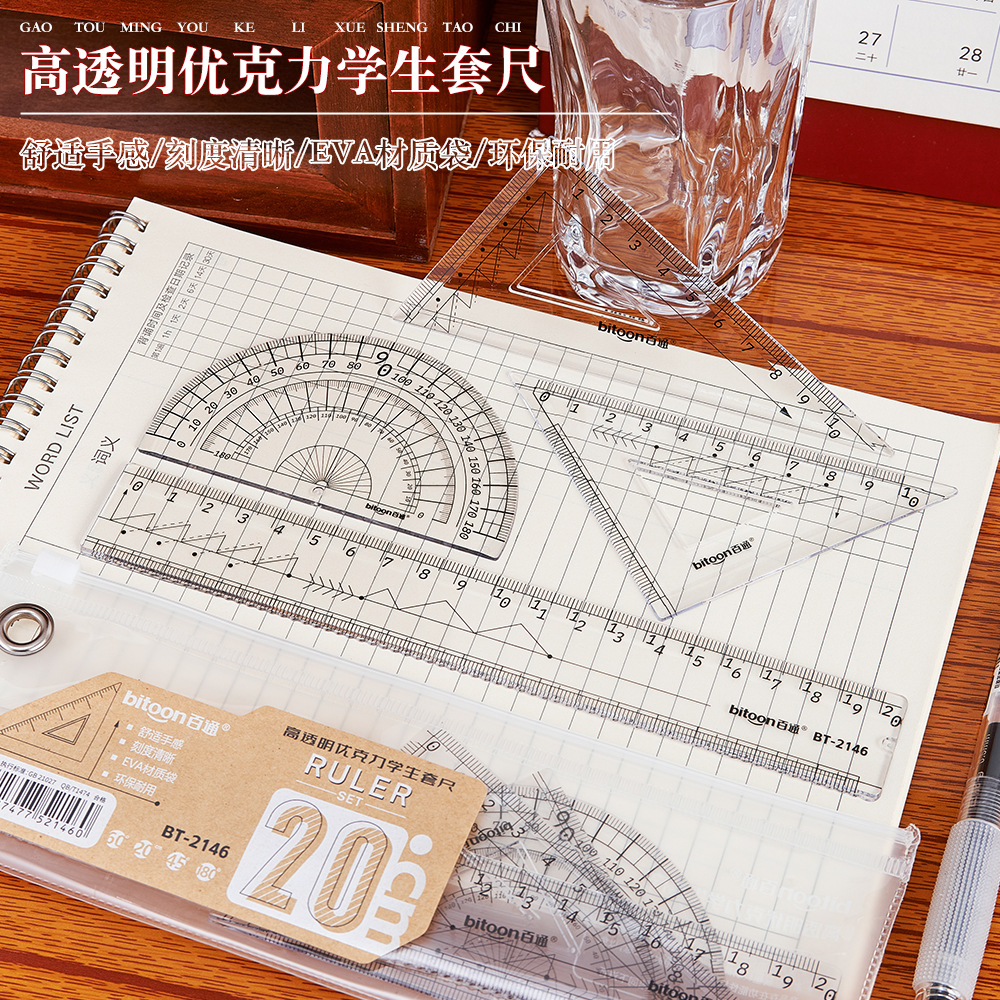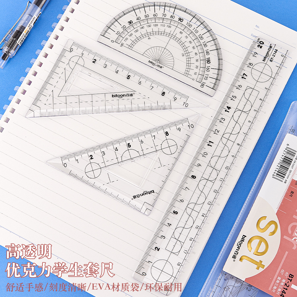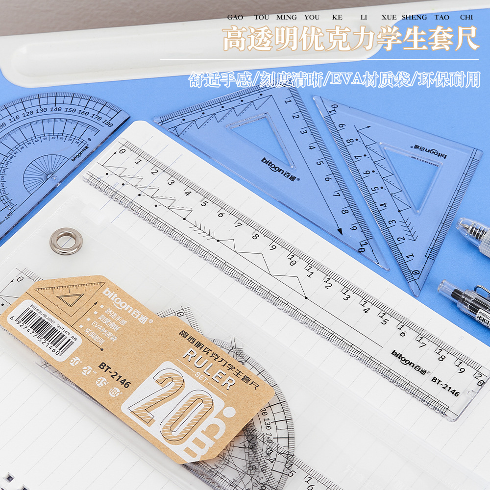 百通文具EVA袋装20厘米套尺学生便携多色可选