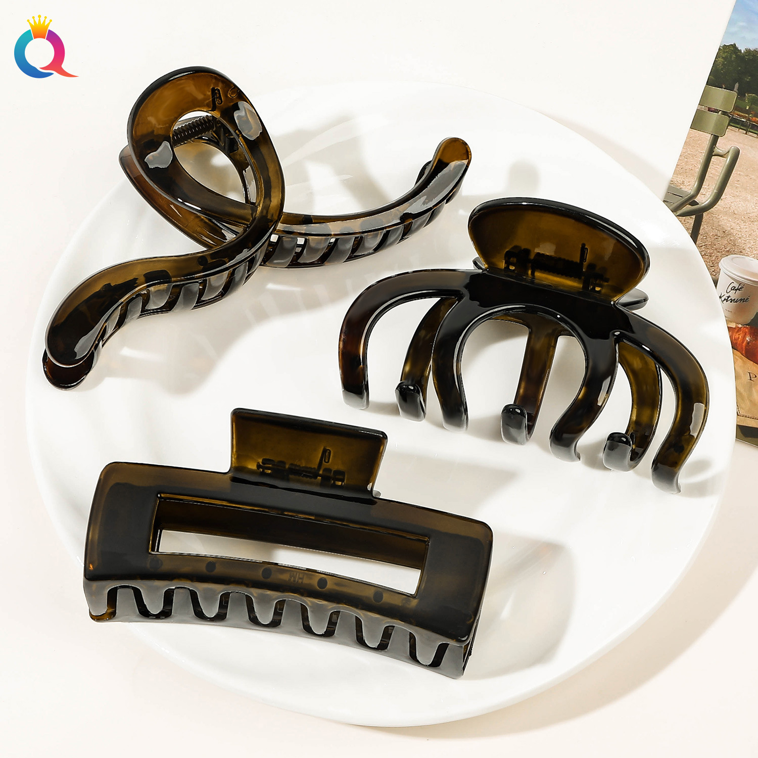 奇阅跨境盘发发夹深茶色抓夹女鲨鱼夹子高级感发抓发饰品批发