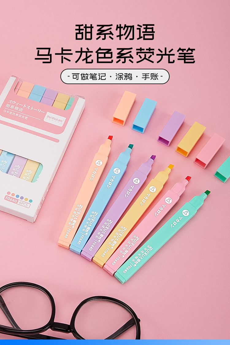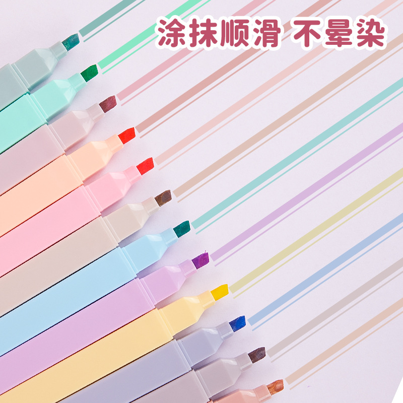 莫兰迪马卡龙色系荧光笔软头20色护眼标记手账笔划重点学生记号笔