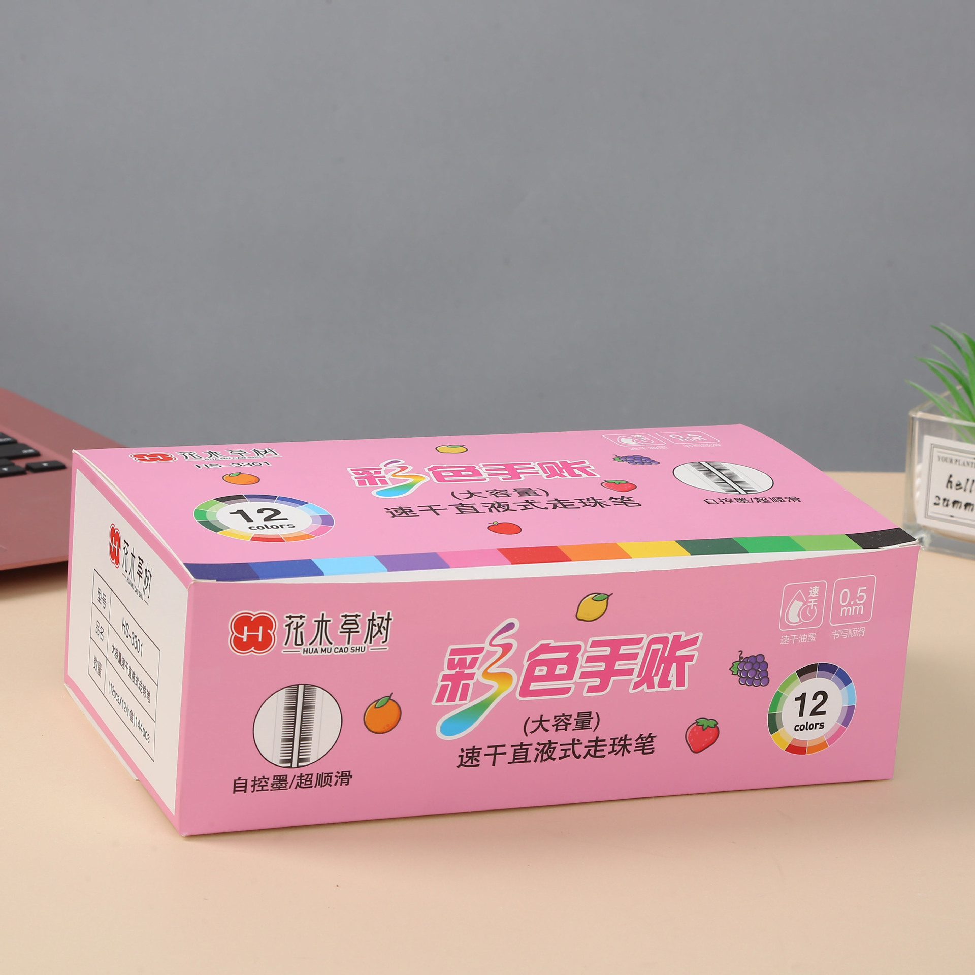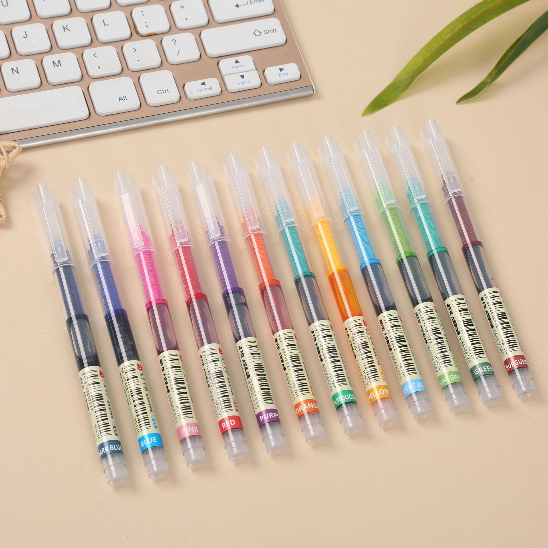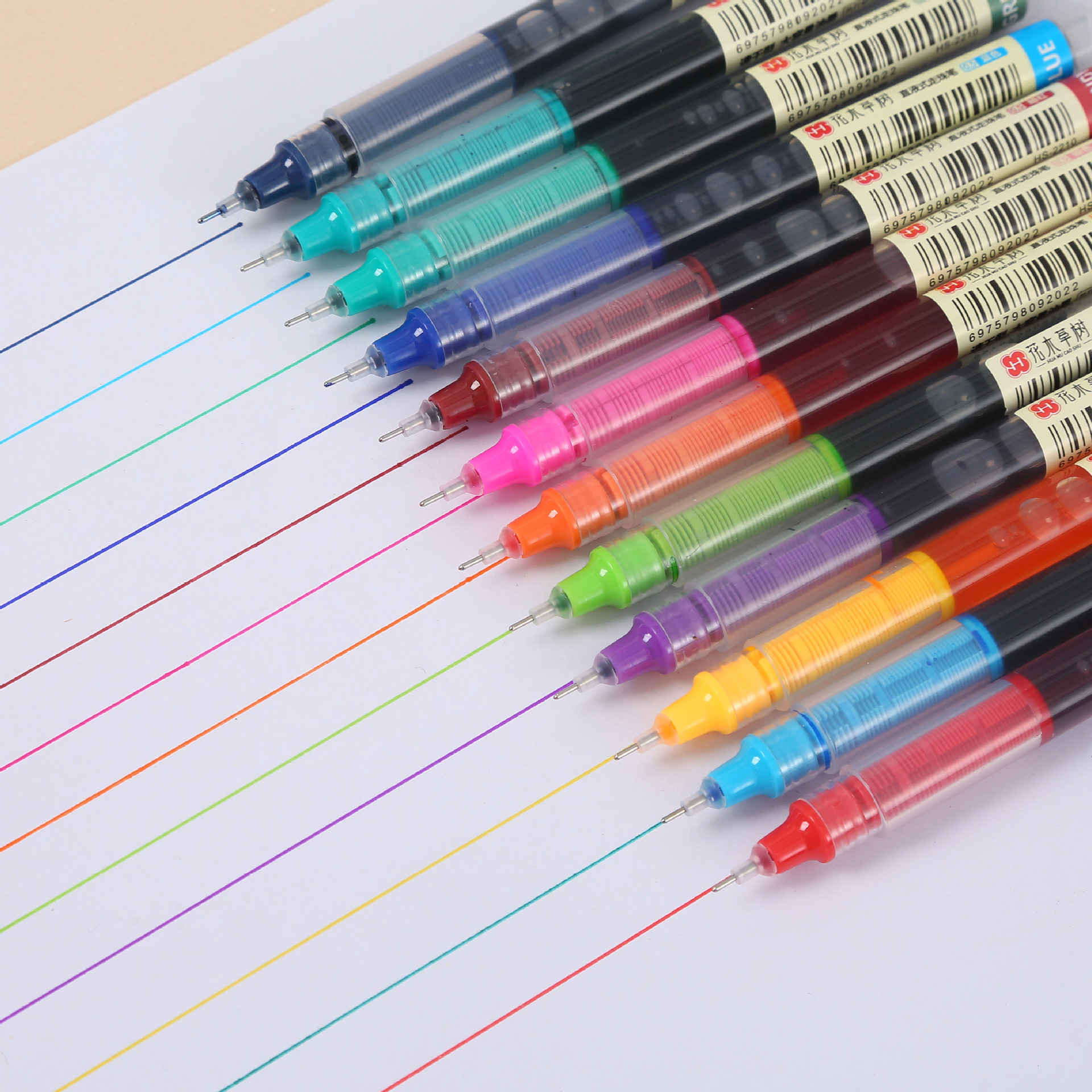 新款12色彩色直液式中性笔 速干针管头碳素笔大容量 直液式彩色笔
