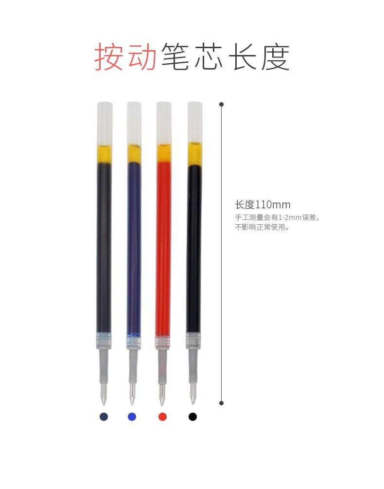 子弹头按动中性笔芯跳动笔芯黑色0.5mm红色蓝色学生考试厂家批发