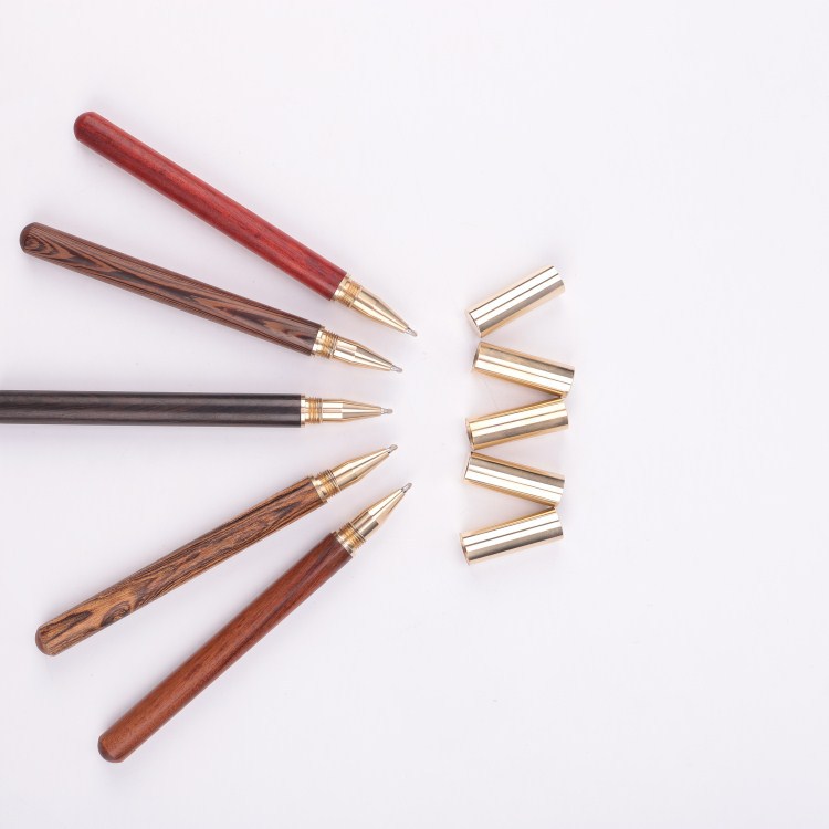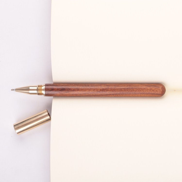 厂家批发黄铜檀木签字笔中性笔水笔实木商务黑色宝珠笔刻logo