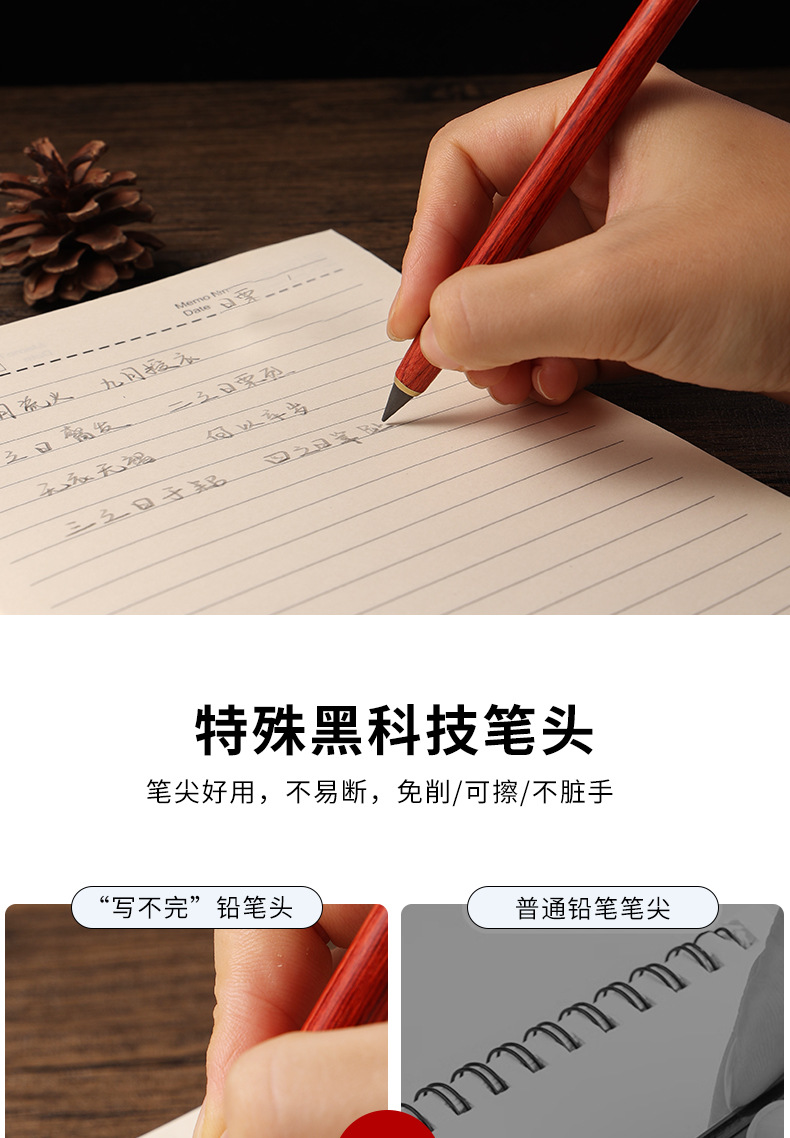 厂家批发实木永恒铅笔黑科技免削小学生可用写不完绘画素描不易断
