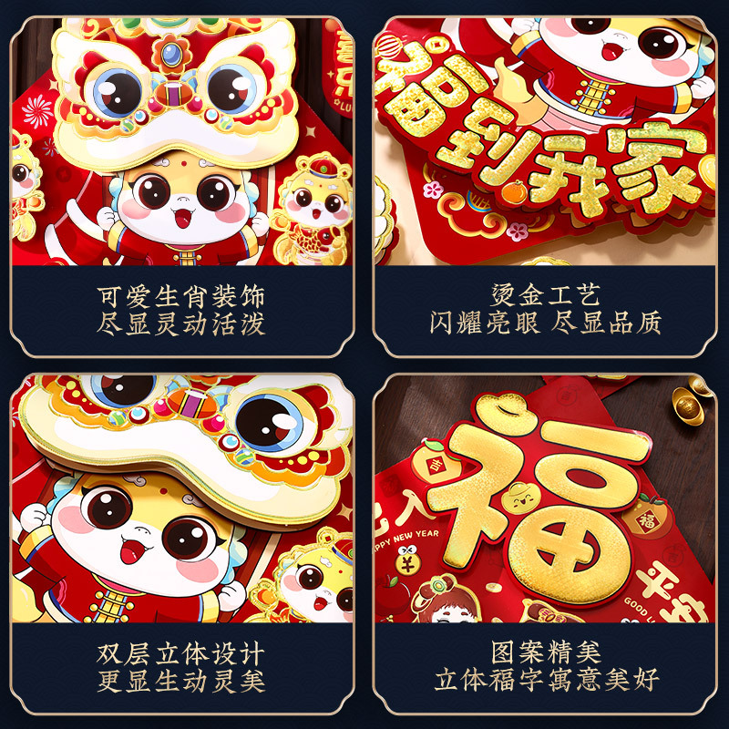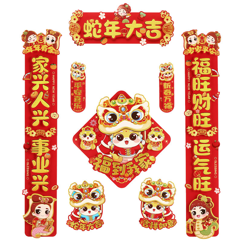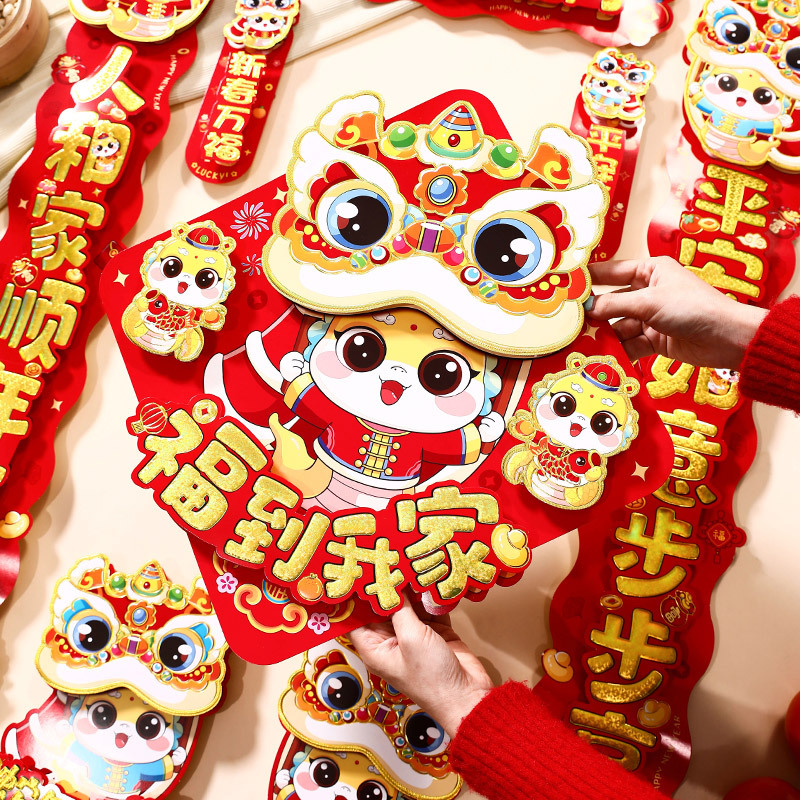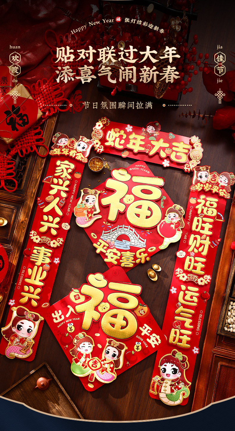 新年对联蛇年春联过年春节卡通装饰品2025新款立体入户大门福字贴