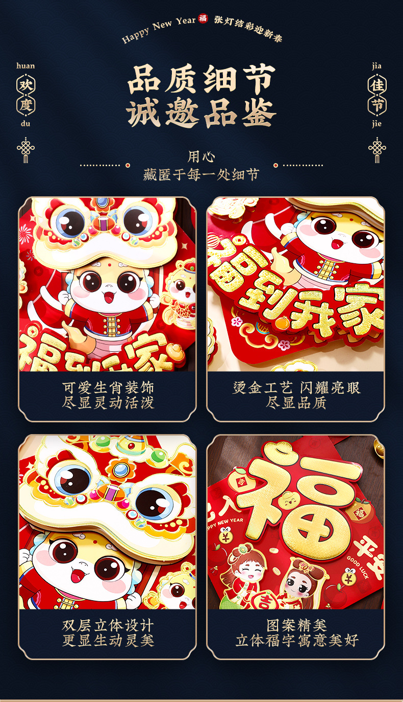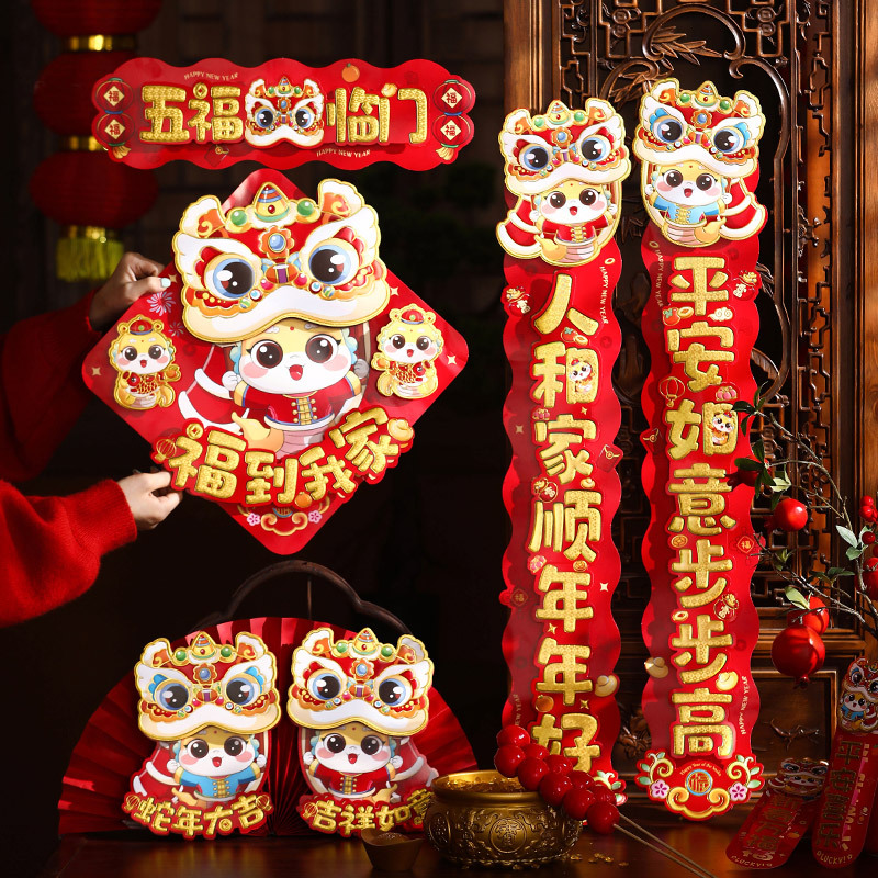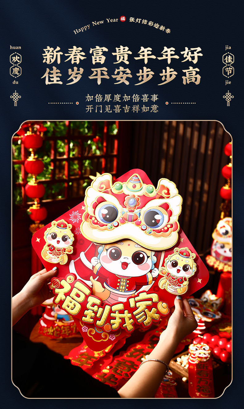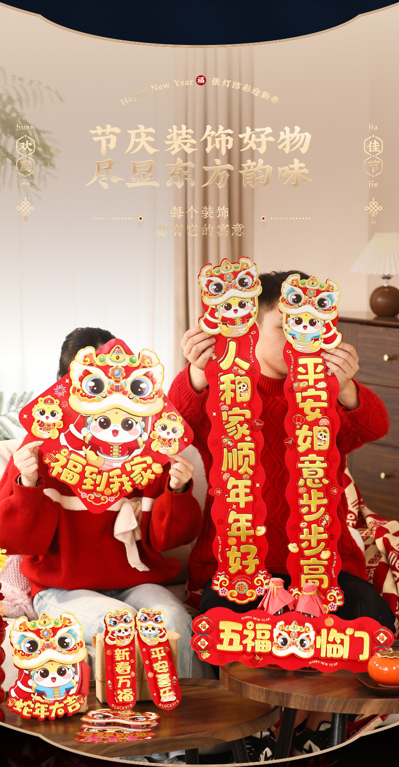 新年对联蛇年春联过年春节卡通装饰品2025新款立体入户大门福字贴