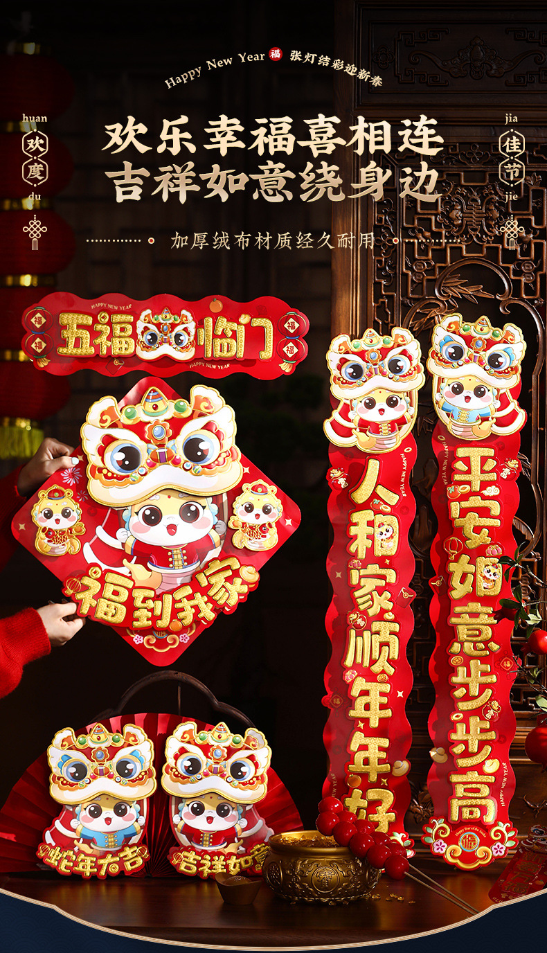 2025蛇年对联批发新年春联烫金广告企业对联植绒福字门贴定 制作