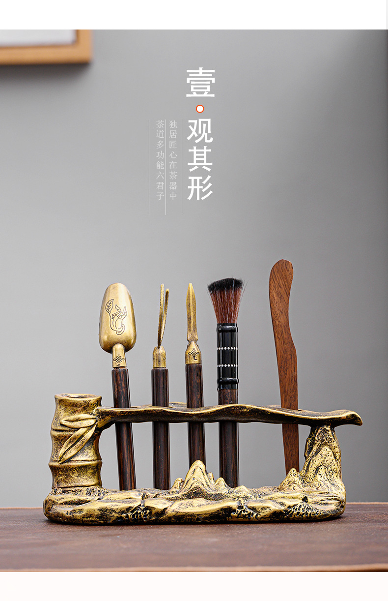 茶具配件实木茶道六件君子套装茶匙茶夹茶针茶刀茶勺泡茶工具批发