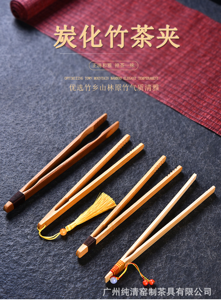 创意竹制茶夹碳化缠线杯夹竹夹吊坠防烫杯夹功夫茶具镊子茶道配件