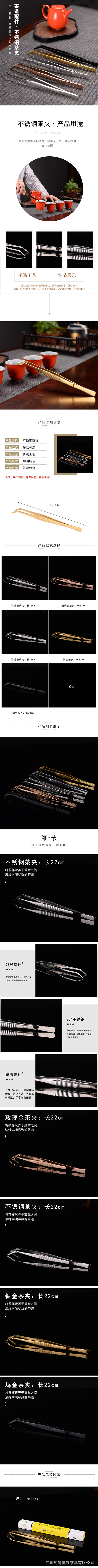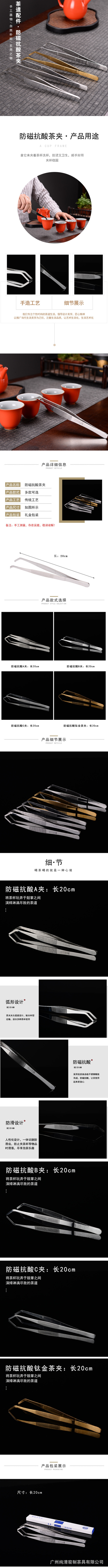 加厚不锈钢茶夹子茶镊子22cm不锈钢夹子304不锈钢茶夹茶具配件批