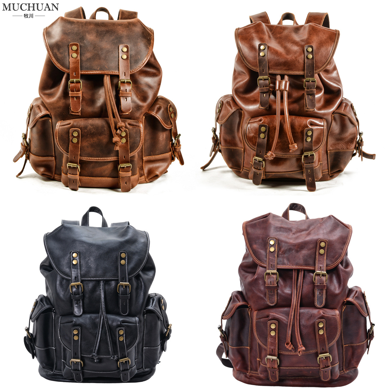 欧美户外双肩包休闲学生书包大容量旅行背包帆布拼接真皮登山包