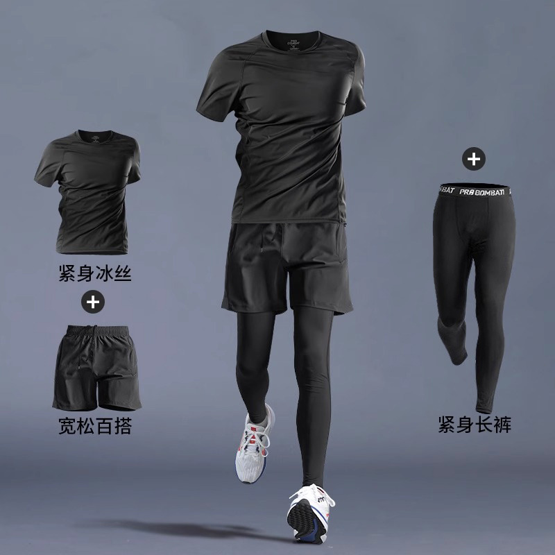 冰丝速干紧身衣男运动套装春秋长袖跑步健身篮球高弹训练服打底裤