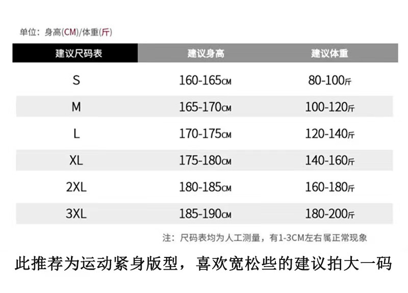 | 2xl 80.00 kg-90.00 kg(2XL 160-180斤) | USD $16.9 | 3000 set available |