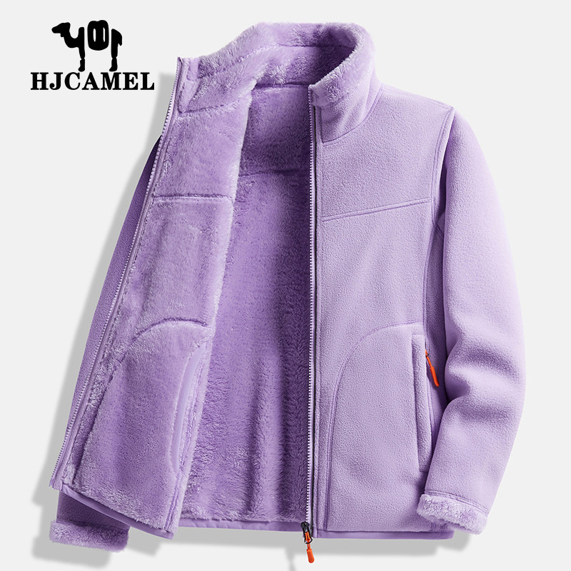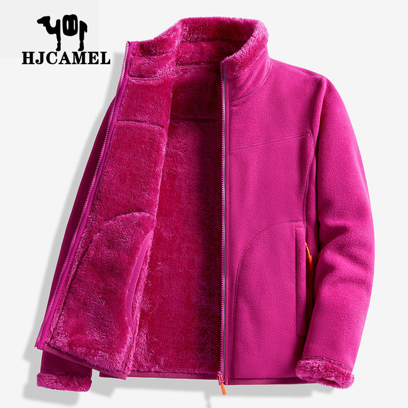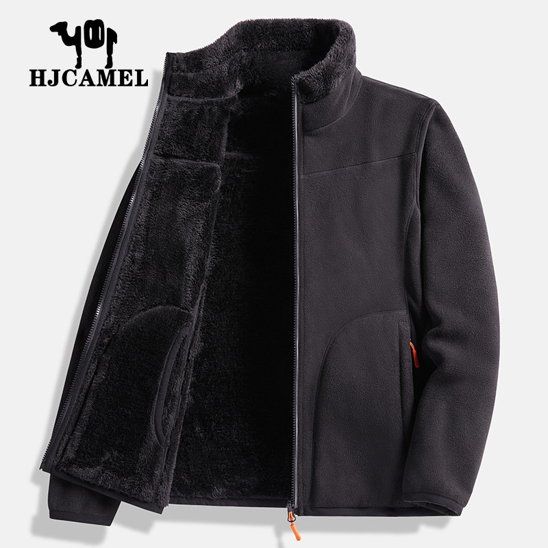 骆驼HJCAMEL 抓绒衣外套摇粒绒上衣潮双面穿加厚珊瑚绒卫衣开衫款