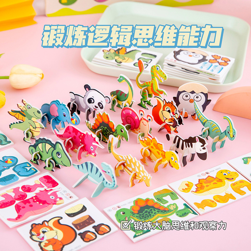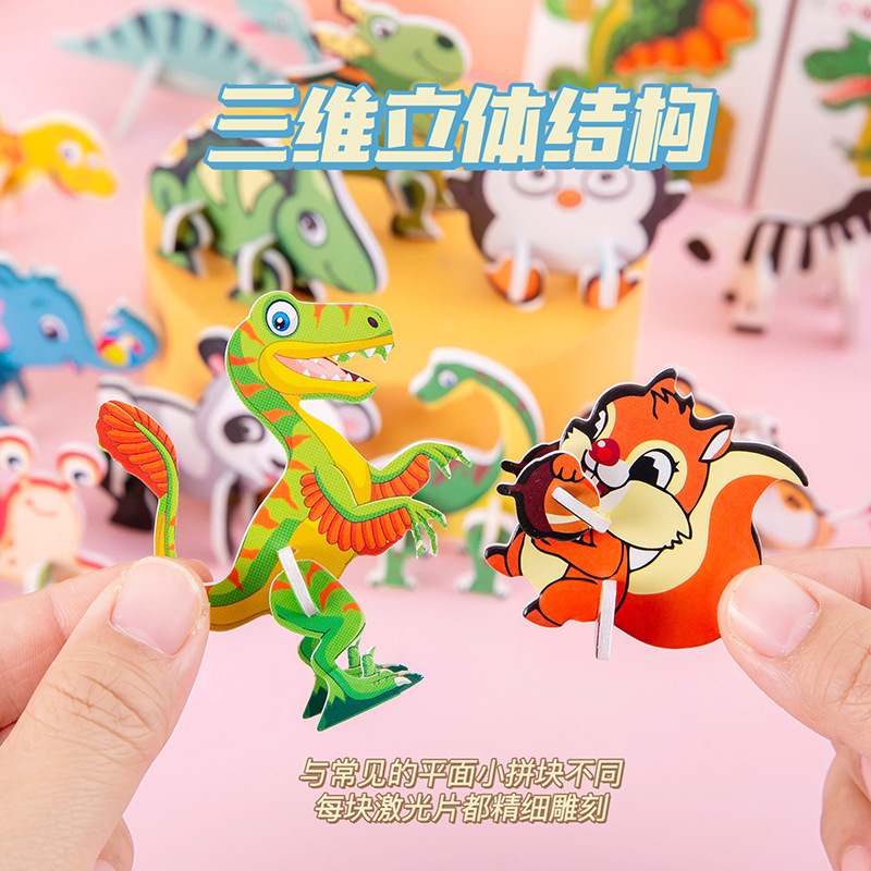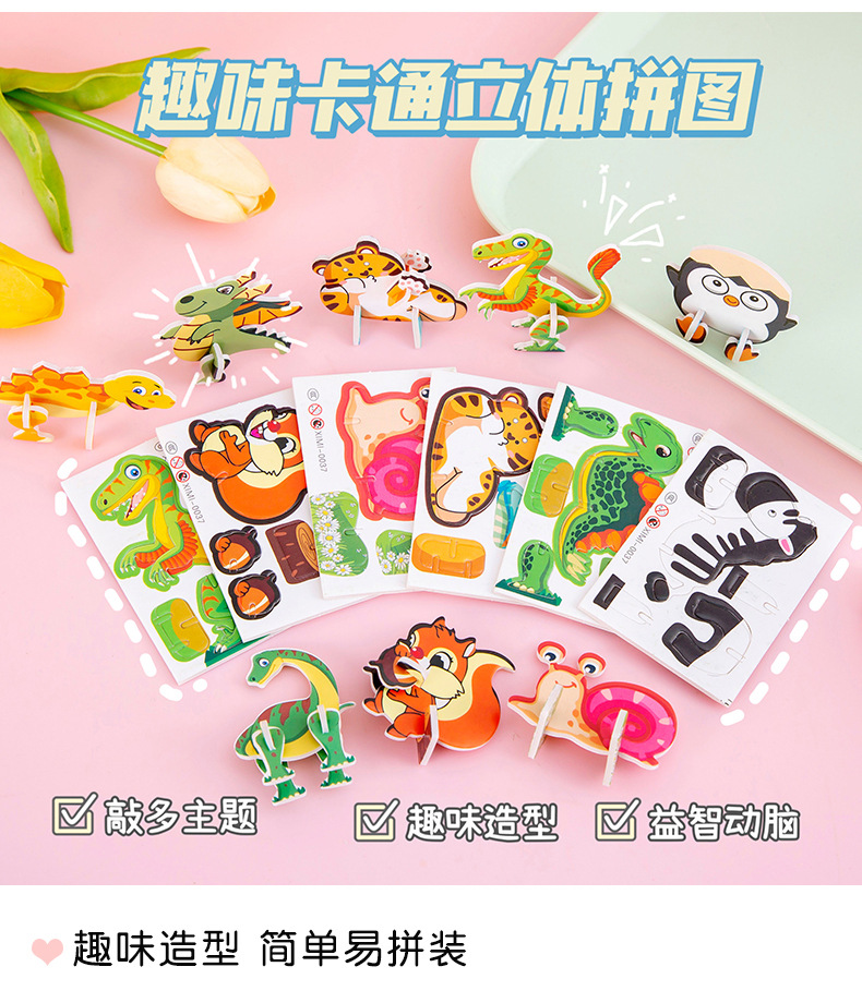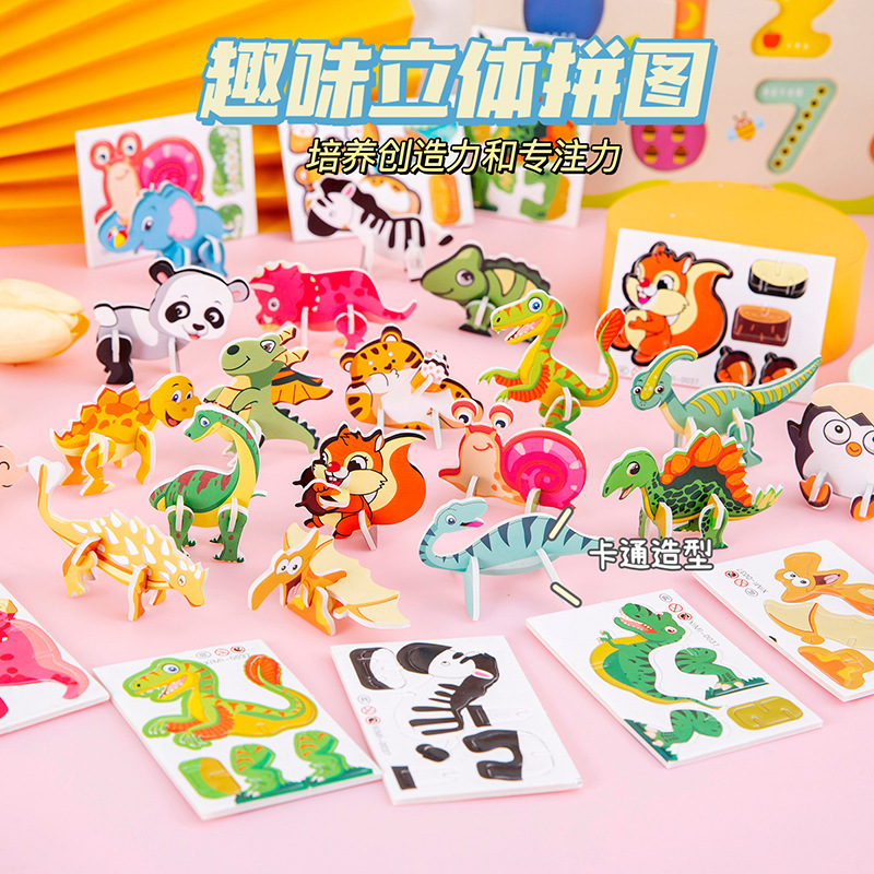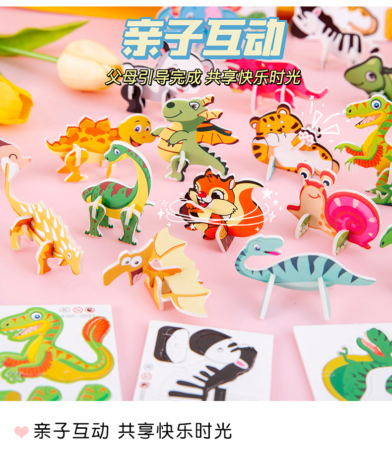 儿童纸质恐龙立体小拼图可爱卡通恐龙造型立体小拼图玩具配件礼品