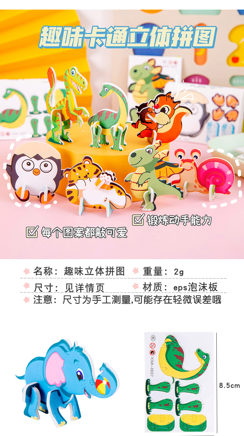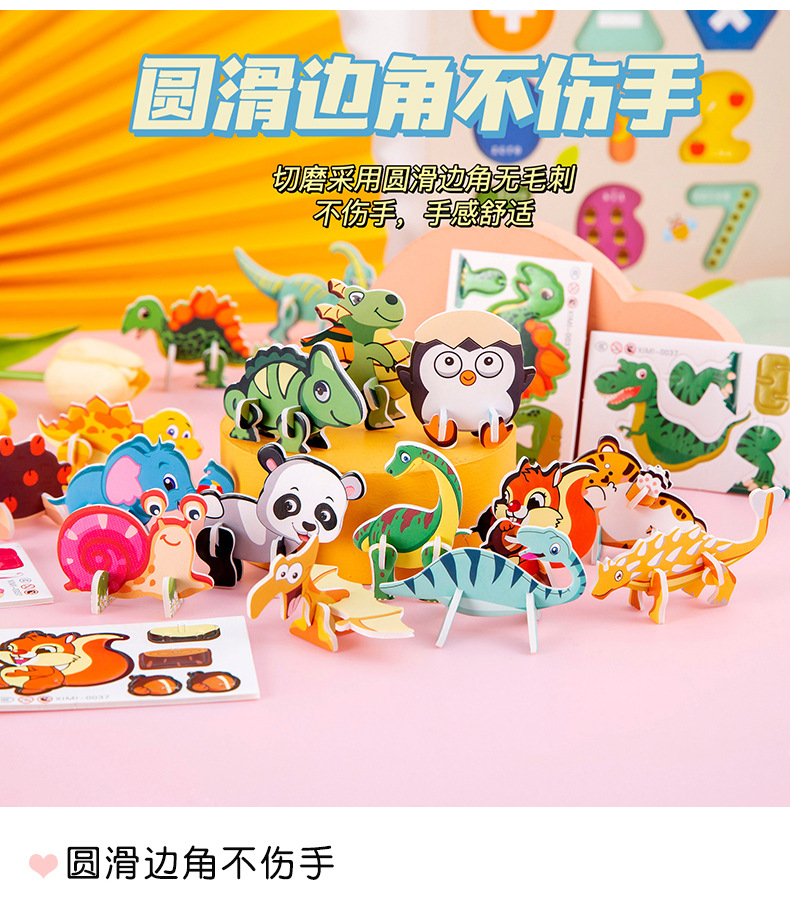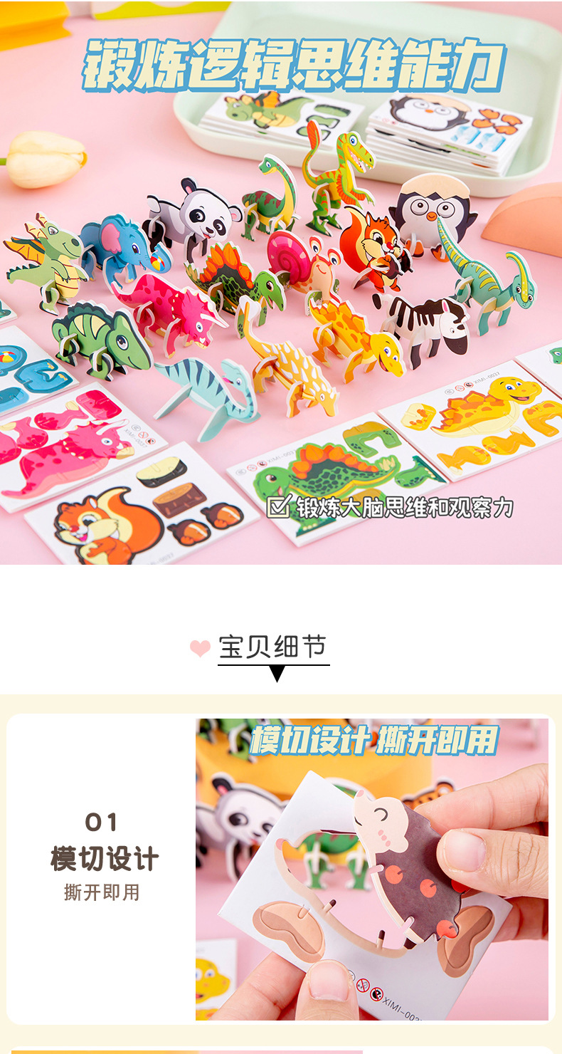 儿童纸质恐龙立体小拼图可爱卡通恐龙造型立体小拼图玩具配件礼品