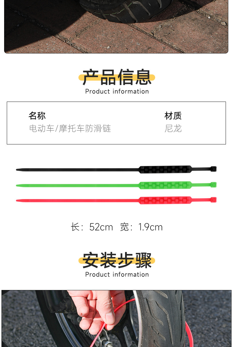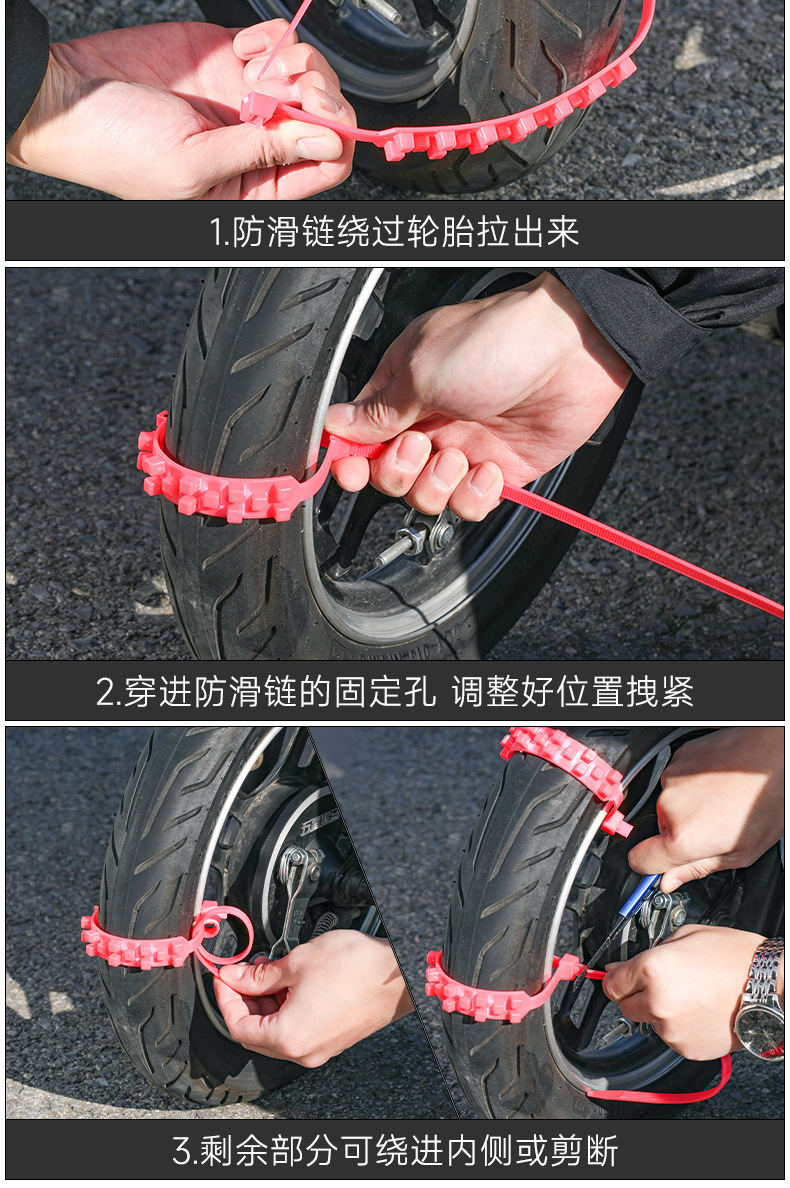 电动车摩托车防滑链塑料尼龙防滑扎带冬季应急可拆卸通用防滑锁链