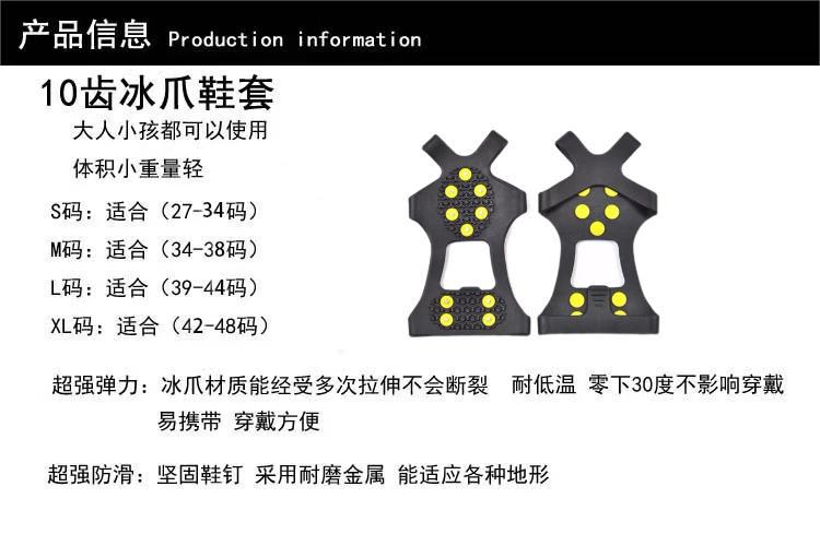 户外10齿冰爪防滑鞋套攀岩冰抓防摔鞋钉登山雪地行走冰爪雪爪