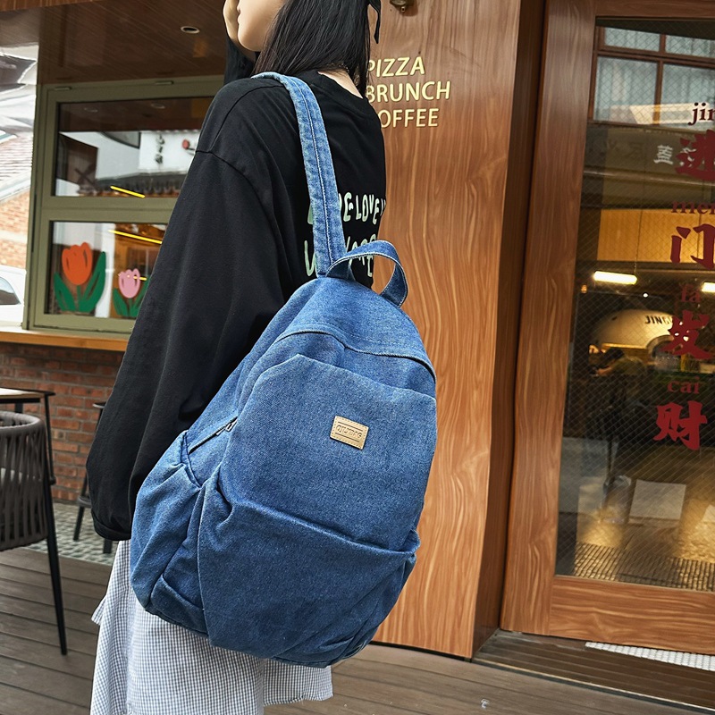 学生日常上课通勤包包女2024时尚简约牛仔布双肩包