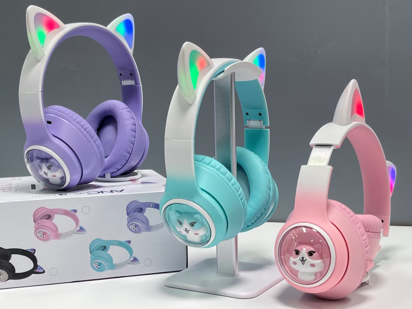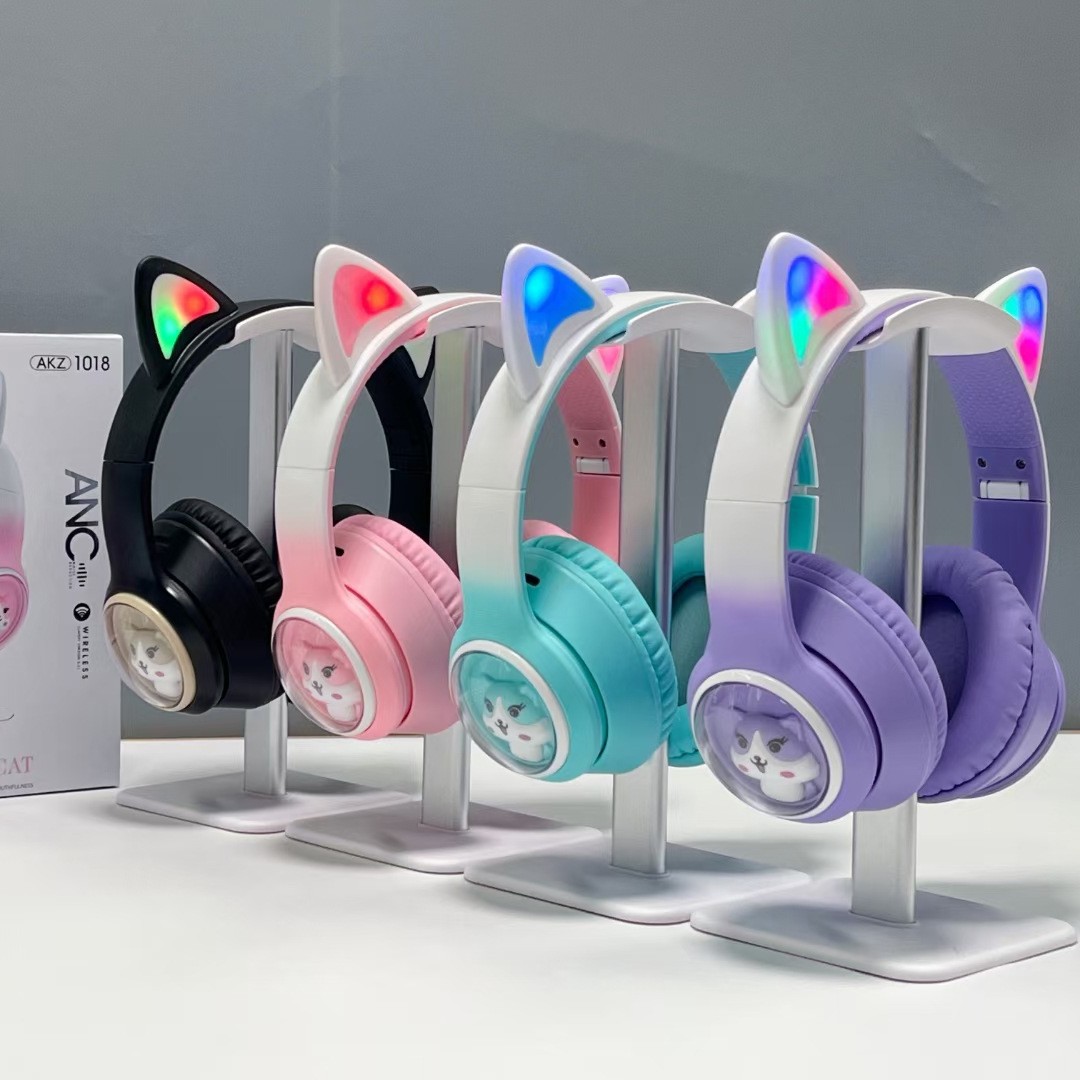 AKZ-1018 新款ANC降噪猫耳发光蓝牙耳机头戴主动降噪长续航耳麦