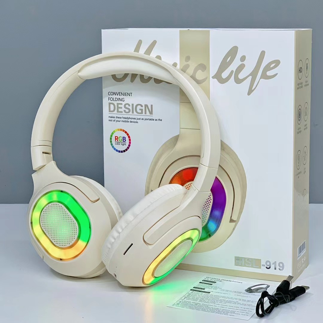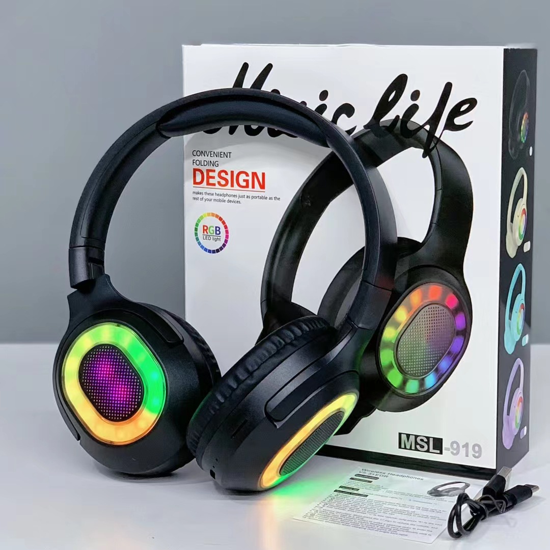 新品MSL-919运动游戏RGB灯头戴无线蓝牙耳机电脑手机通用耳麦批发
