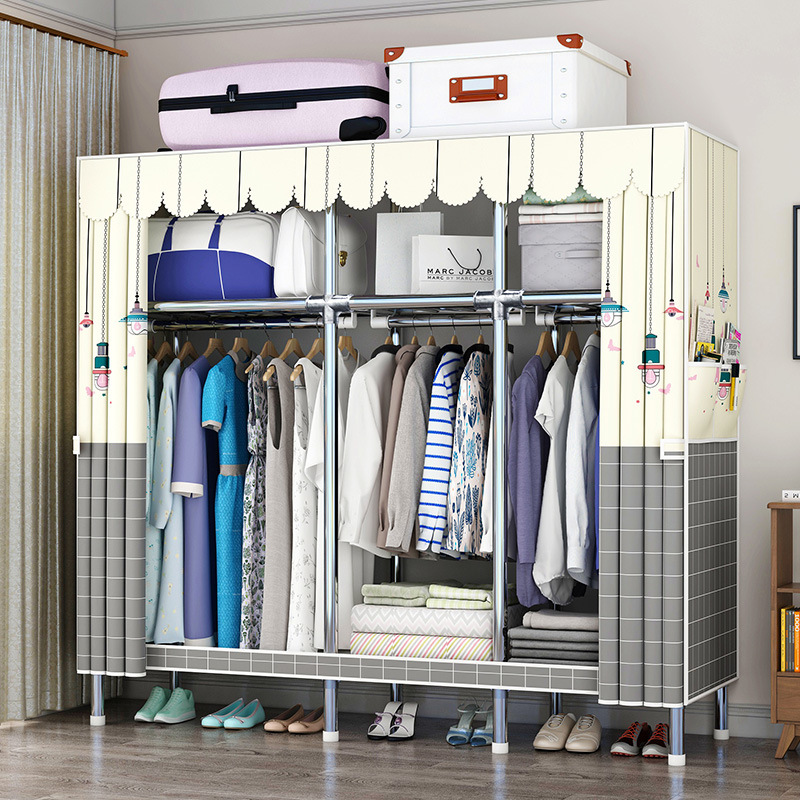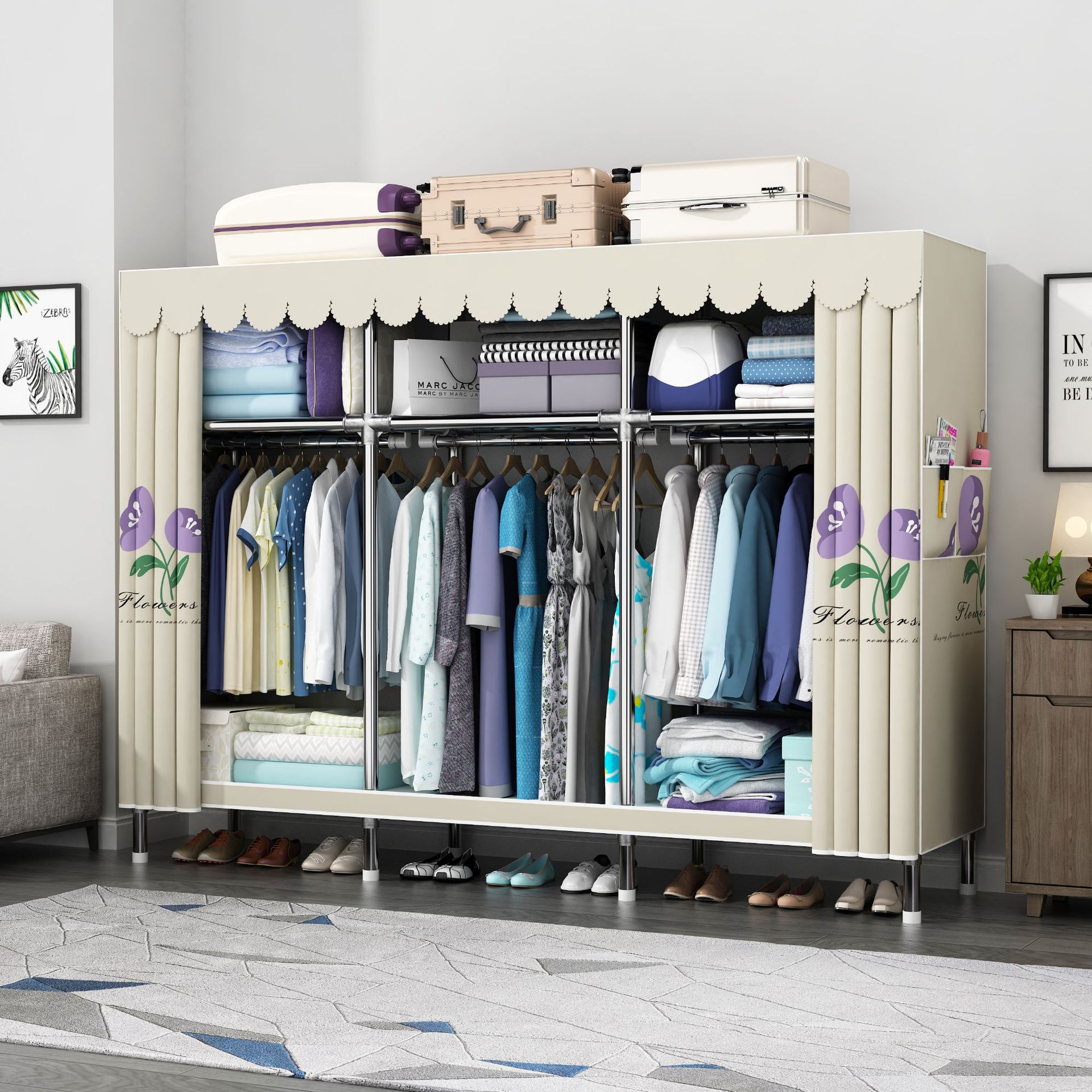 家用合金接口衣柜简易衣橱涤棉布加厚加粗管简易衣柜衣服收纳柜