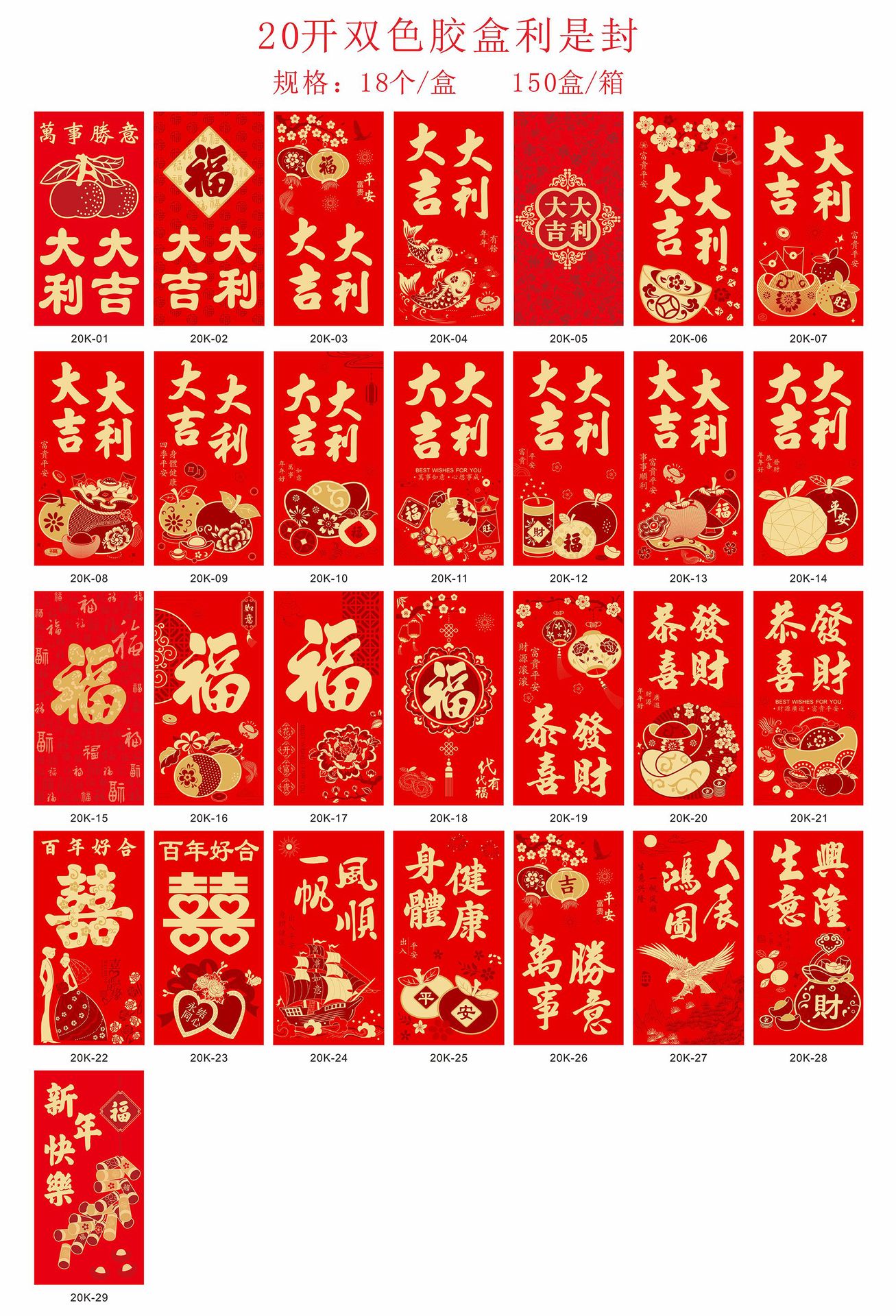 红包利是封20k大号塑料胶合盒装软纸双色红包袋
