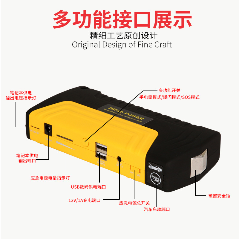 汽车应急启动电源12v 多功能车载应急电源便捷式打火启动器搭电宝
