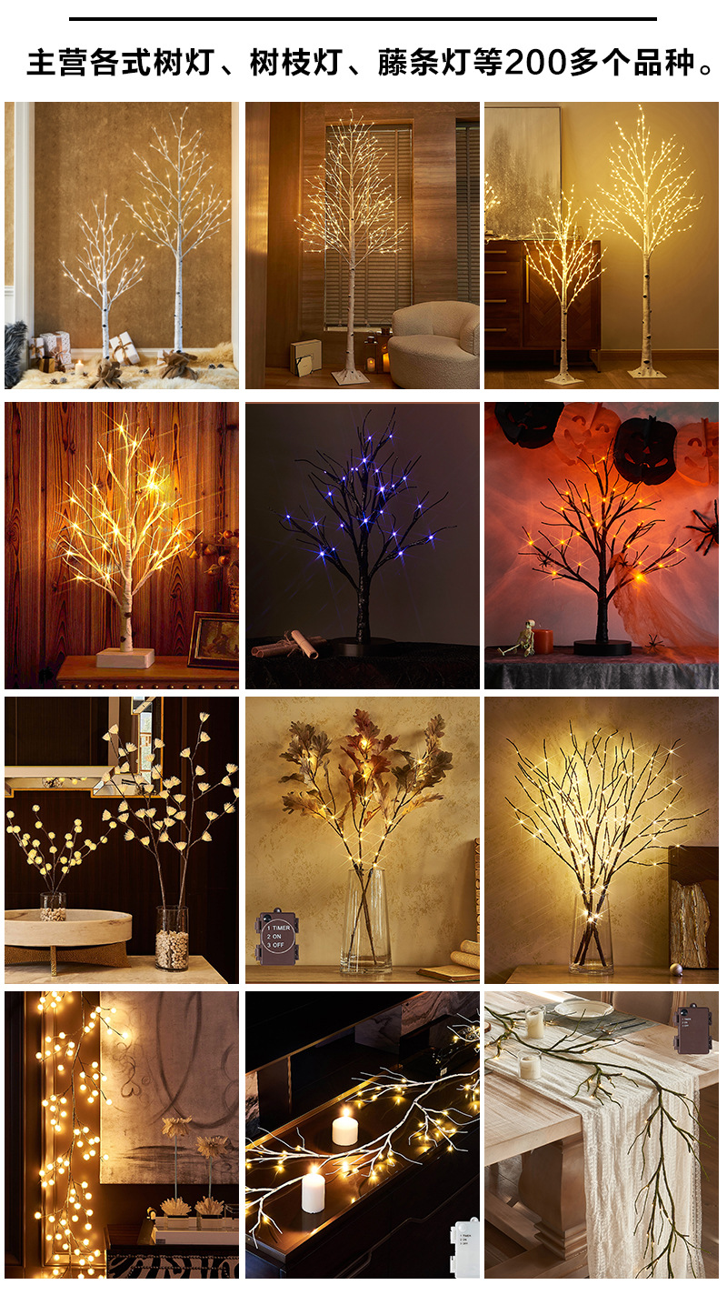 外贸专供Hairui松柏树枝红浆果节日装饰LED室内灯定时USB工厂直供